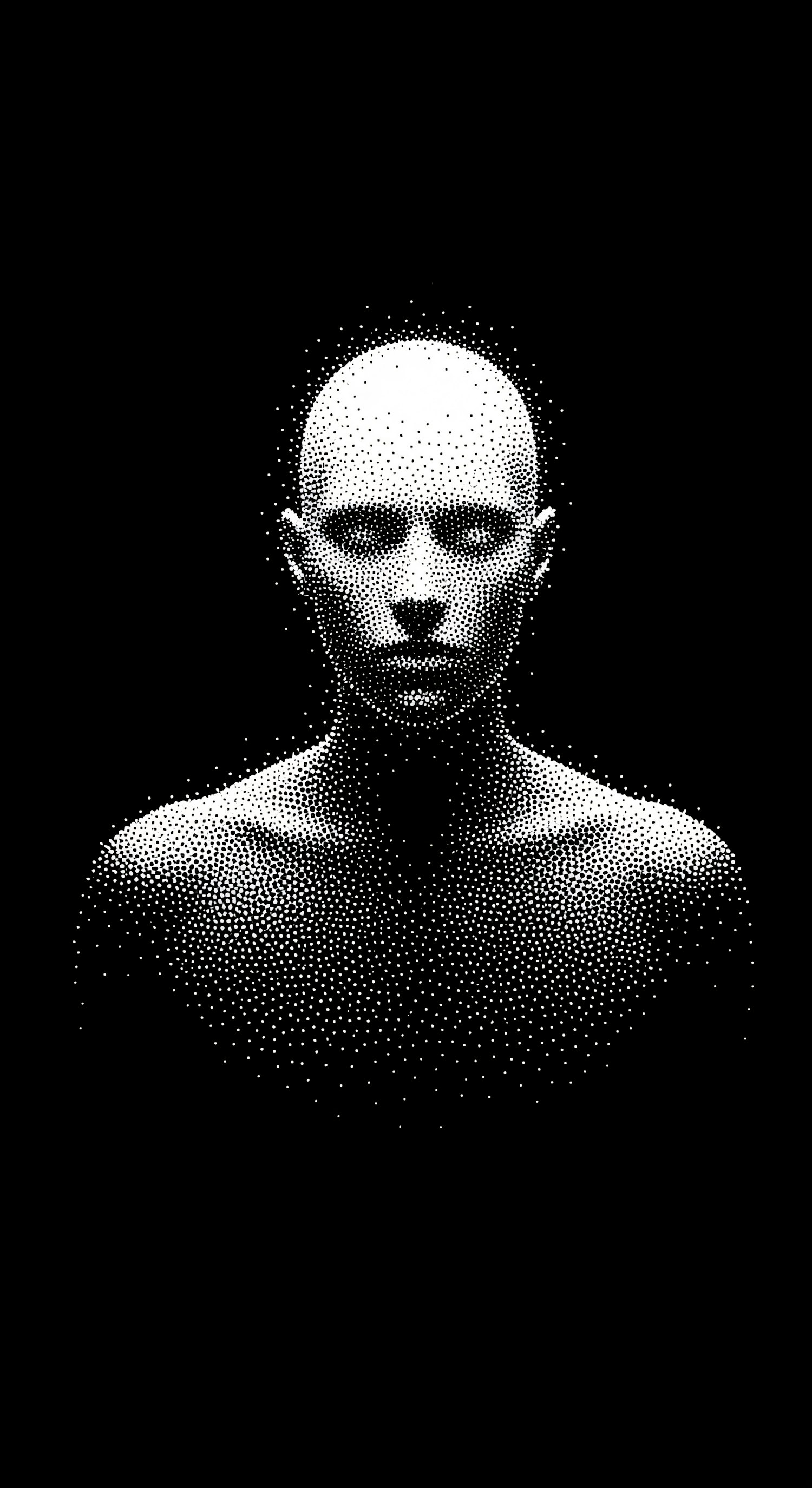 Abstract dot matrix art of a human figure on a black background, showcasing a modern and minimalist aesthetic.