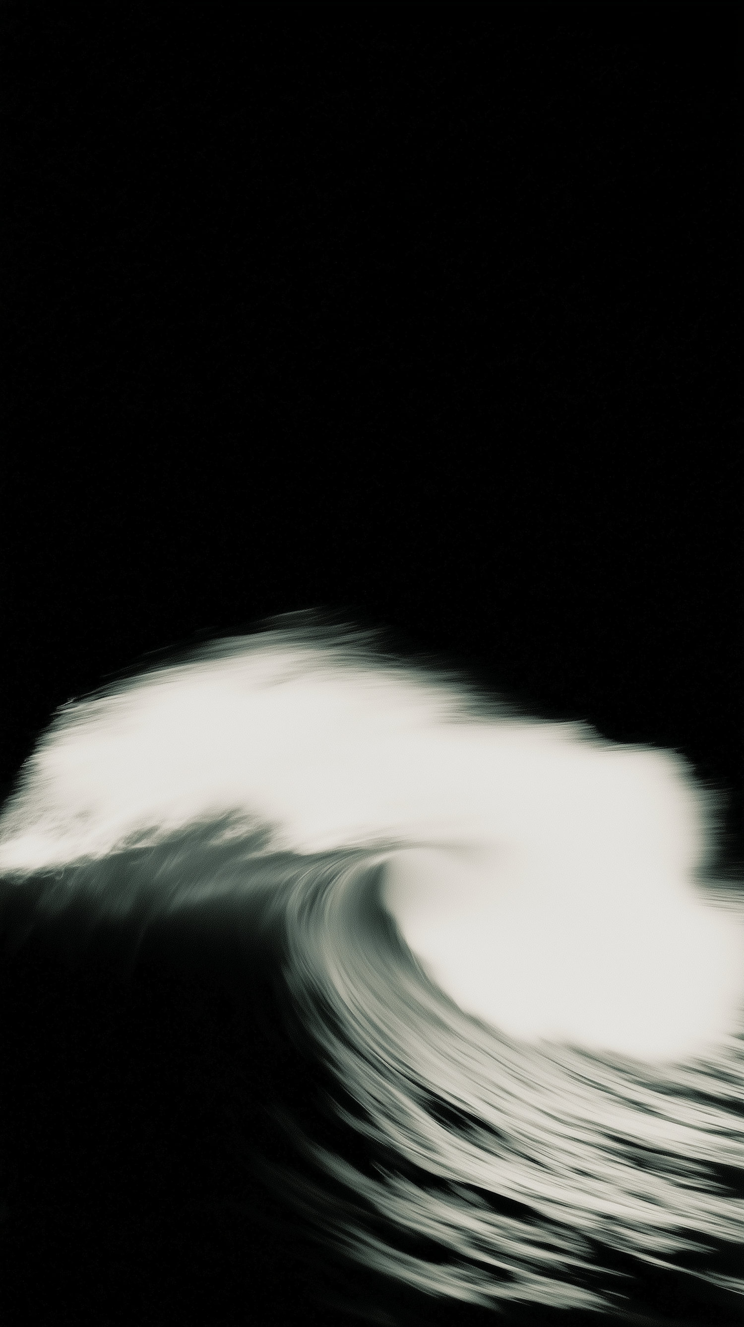 A striking abstract wave illuminated in white against a black background, showcasing fluid motion and minimalist oceanic beauty.