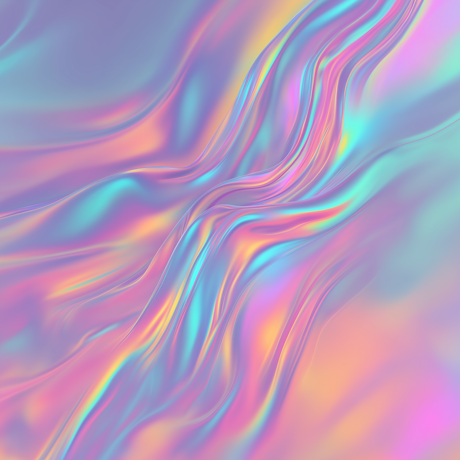 A dreamy abstract design with flowing pastel hues of pink, blue, and yellow, creating a glossy, iridescent, and fluid visual effect.