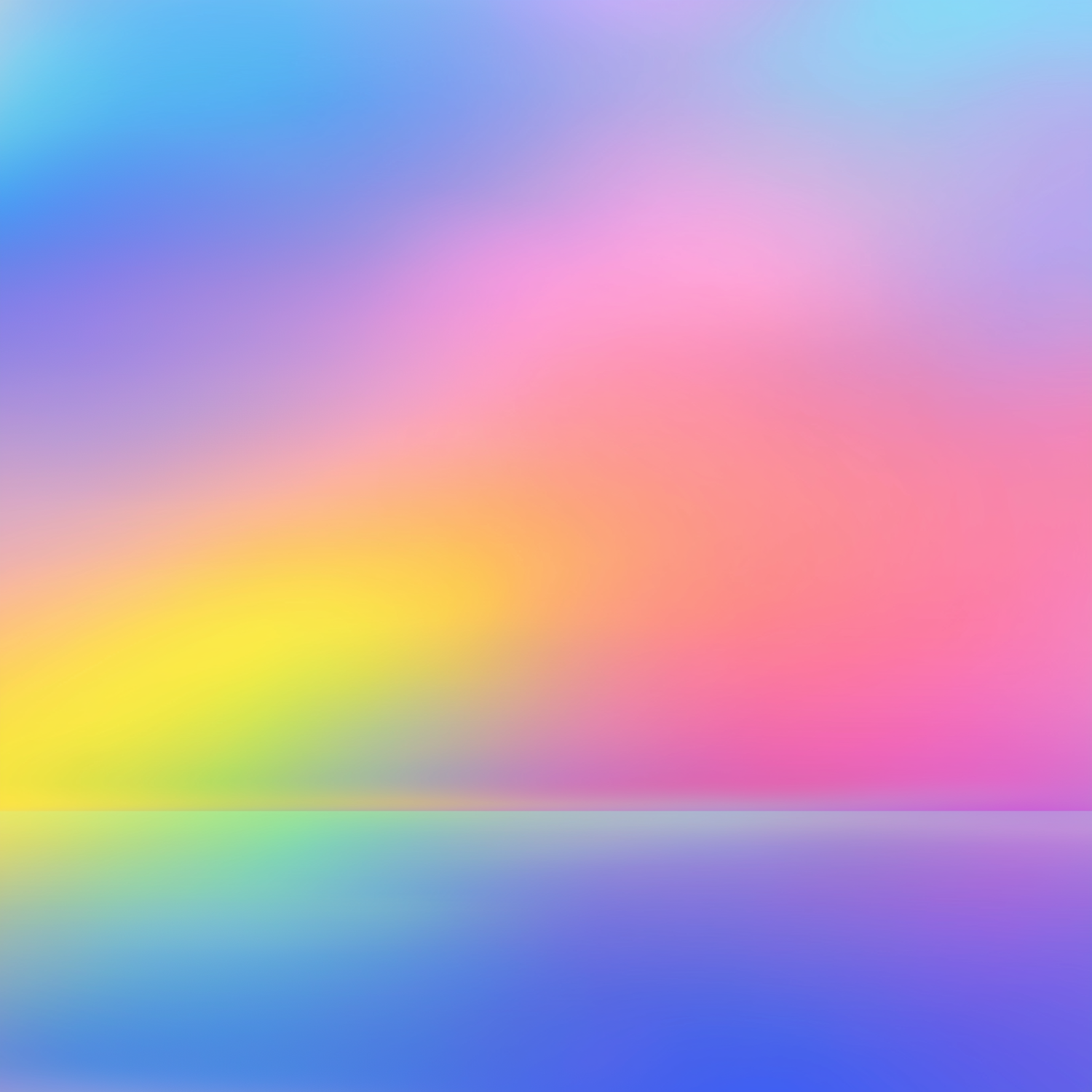 A dreamy pastel gradient with pink, yellow, blue, and purple hues, mirrored below for a serene, reflective effect.