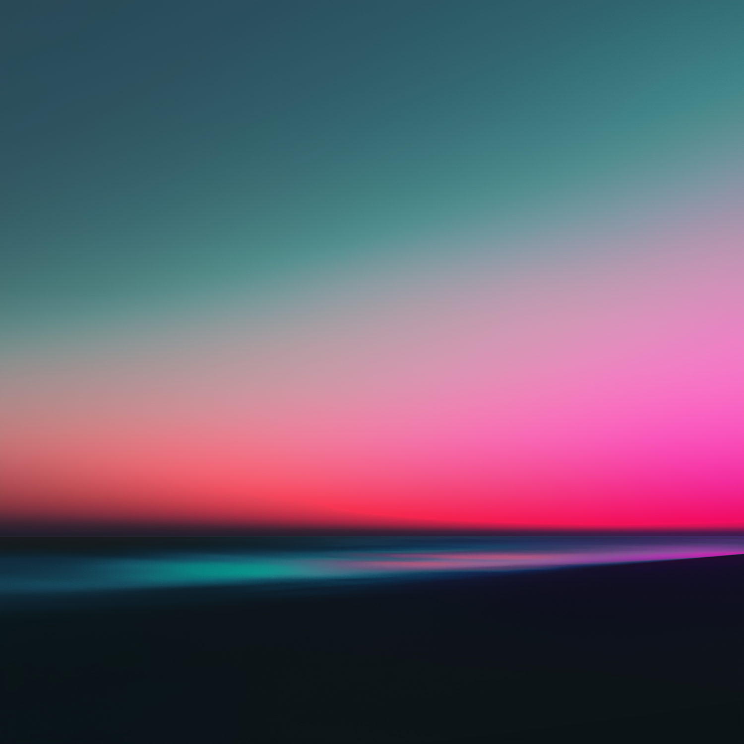 A dreamy abstract gradient blending teal, pink, and magenta hues, evoking a tranquil sunset over a calm horizon.