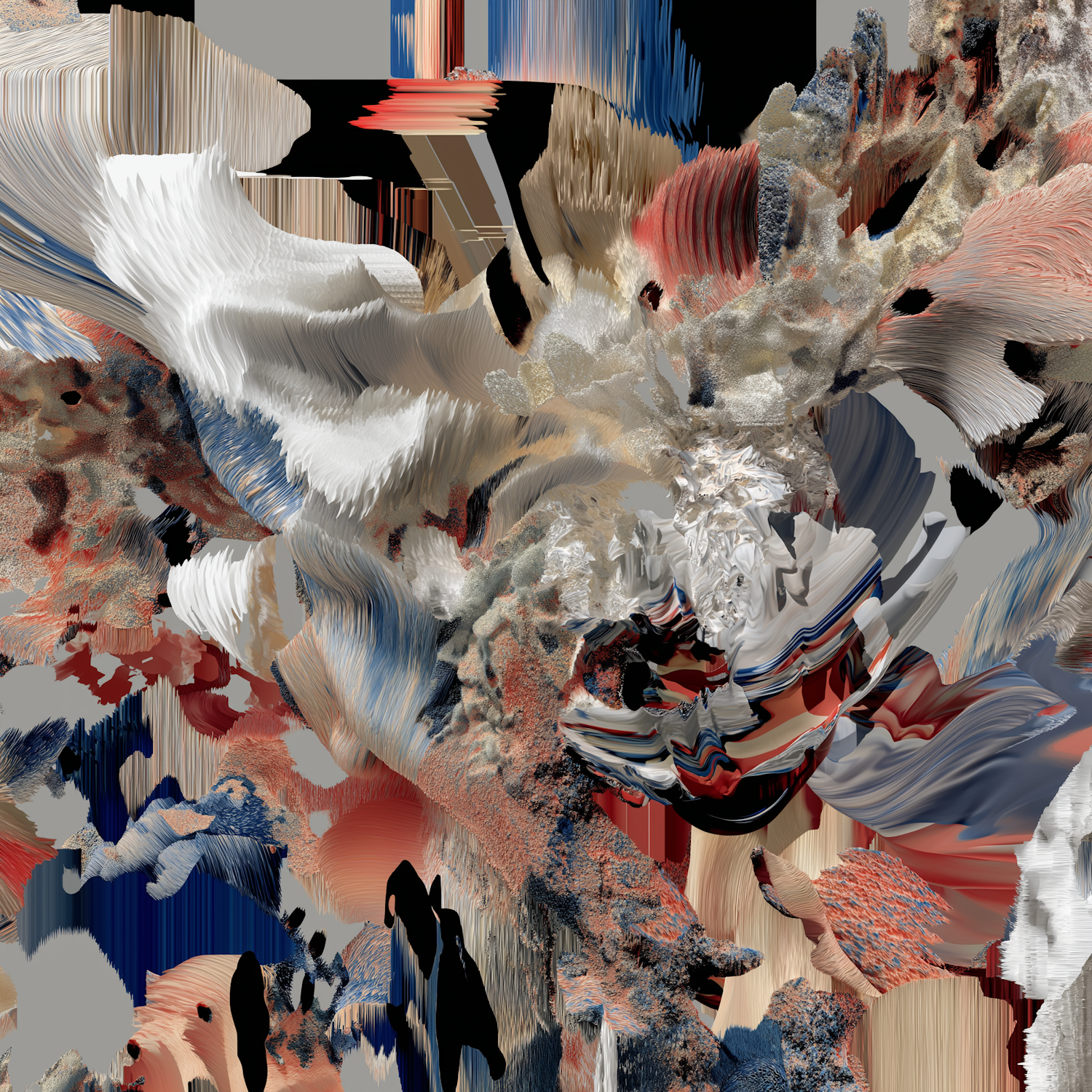 Abstract digital artwork with flowing textures and vibrant colors, blending organic and geometric forms in a dynamic composition.