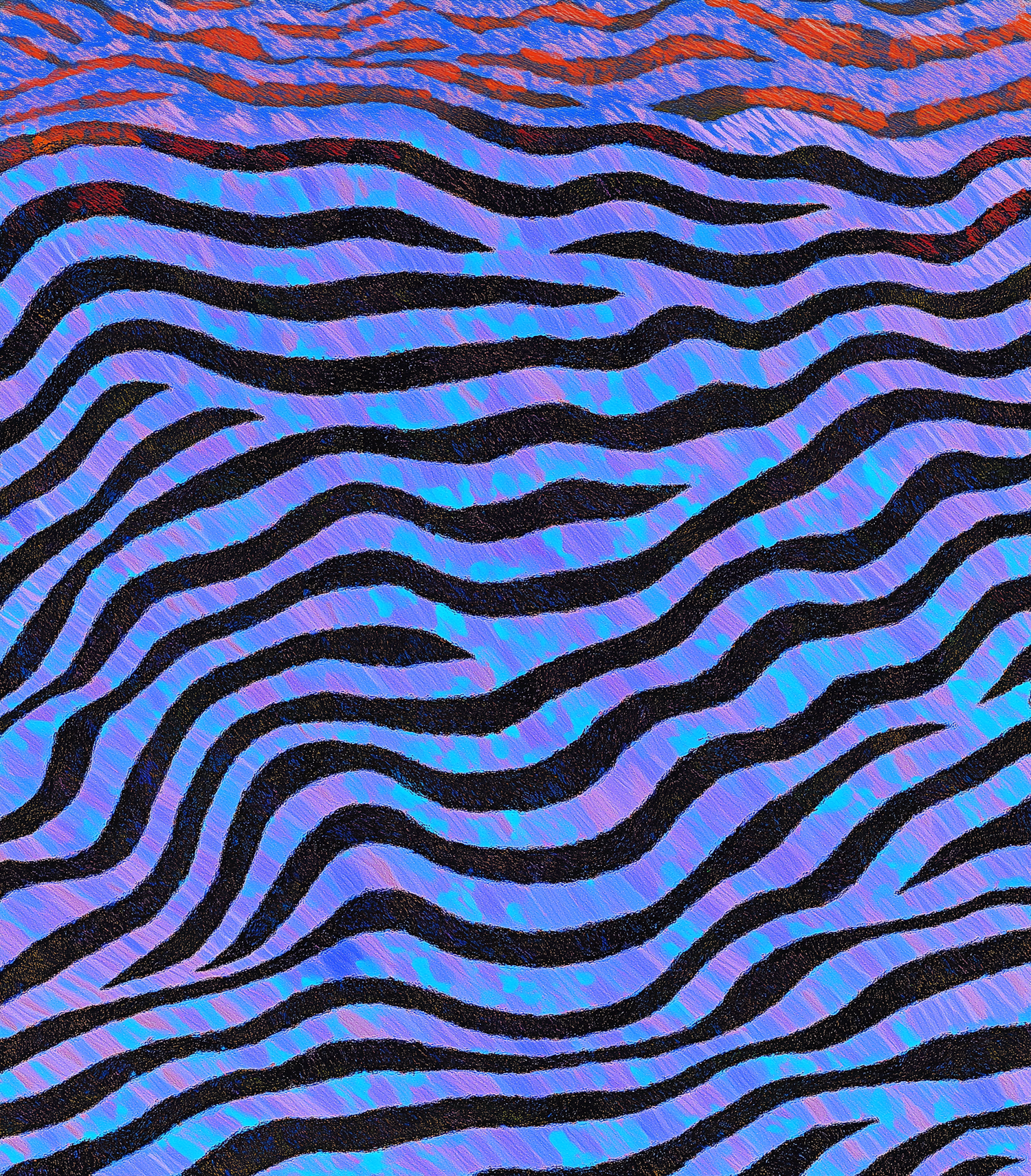 Abstract illustration with wavy black stripes on a blue and purple background, accented with red and orange hues.