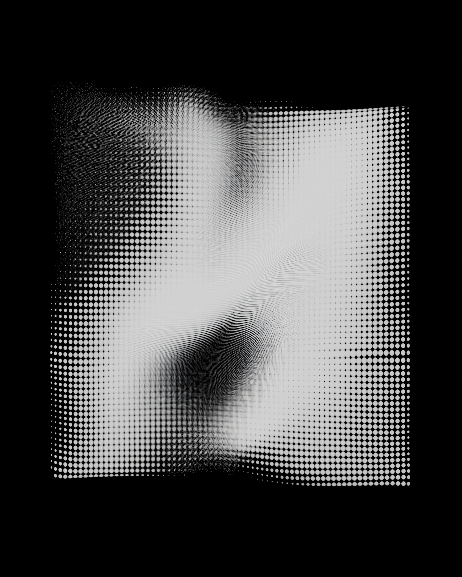 Abstract black and white dot pattern creating a wave-like illusion with a dynamic, fluid appearance against a black background.