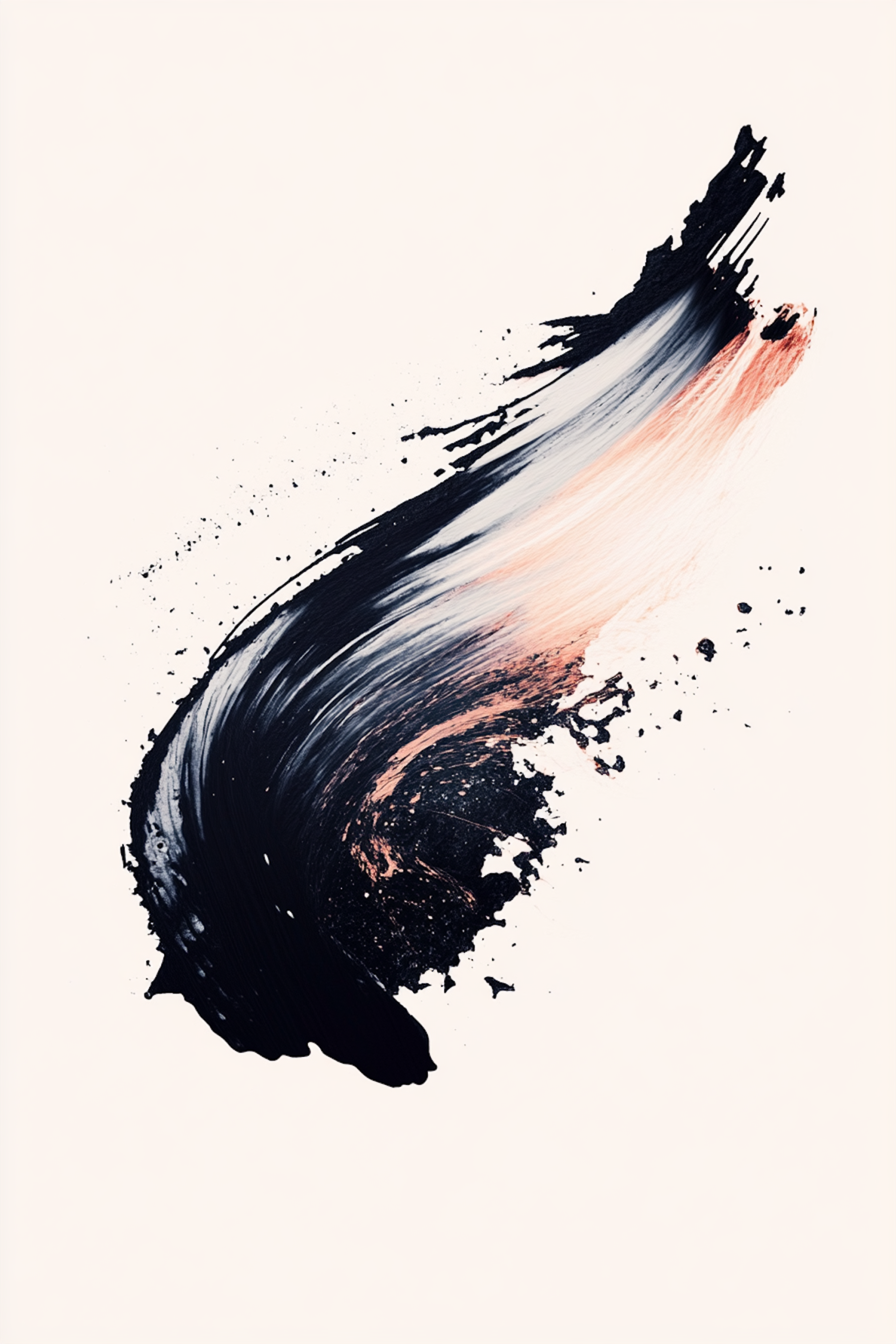 Abstract brushstroke art with black, white, and pink hues on a light background, showcasing dynamic movement and texture.