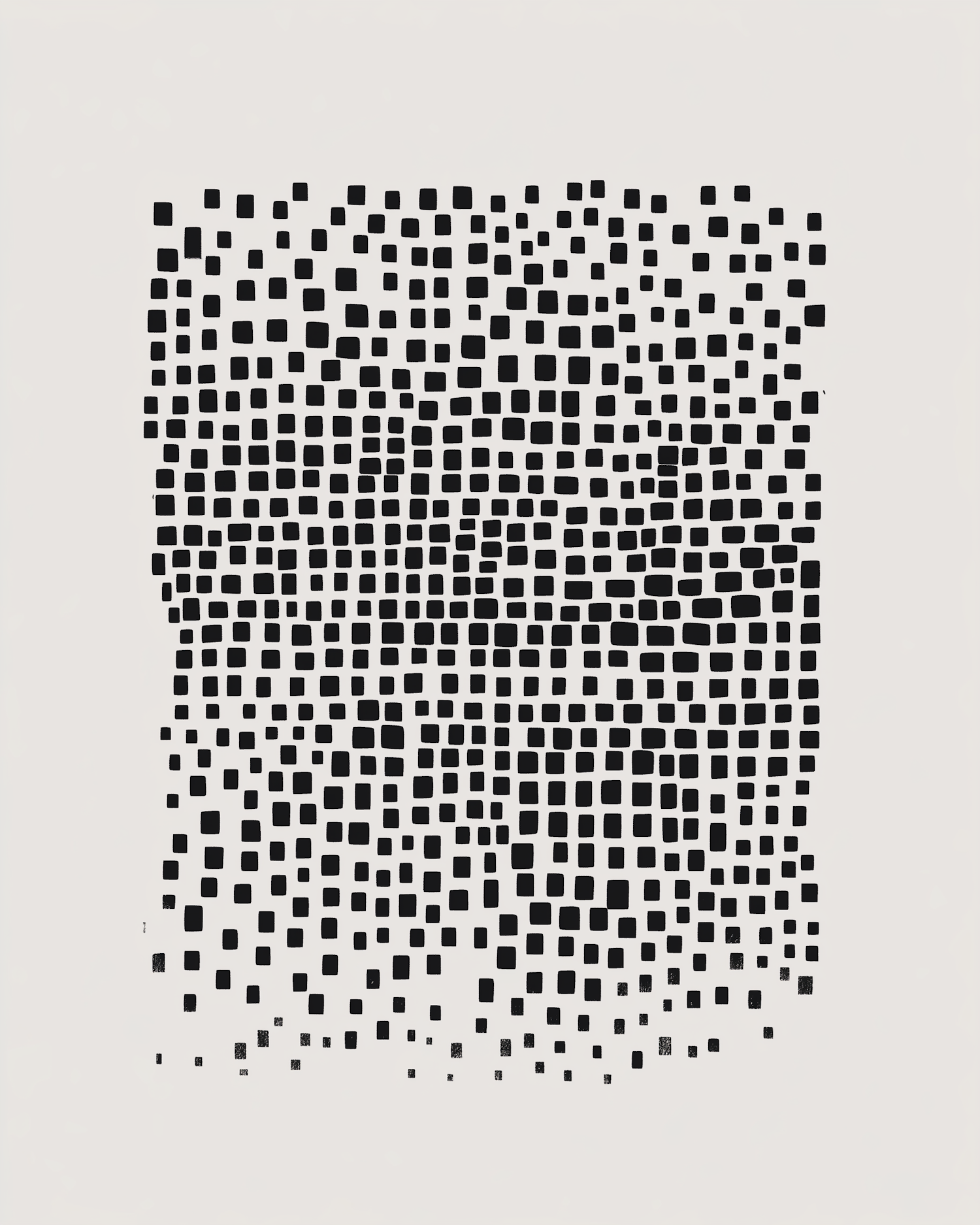 Abstract grid of black squares on white background, creating a pixelated effect with a gradient-like dispersion.