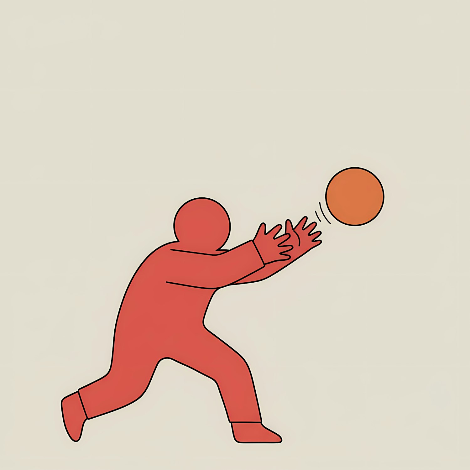 Minimalist illustration of a red figure reaching for an orange ball on a beige background, emphasizing simplicity and motion.