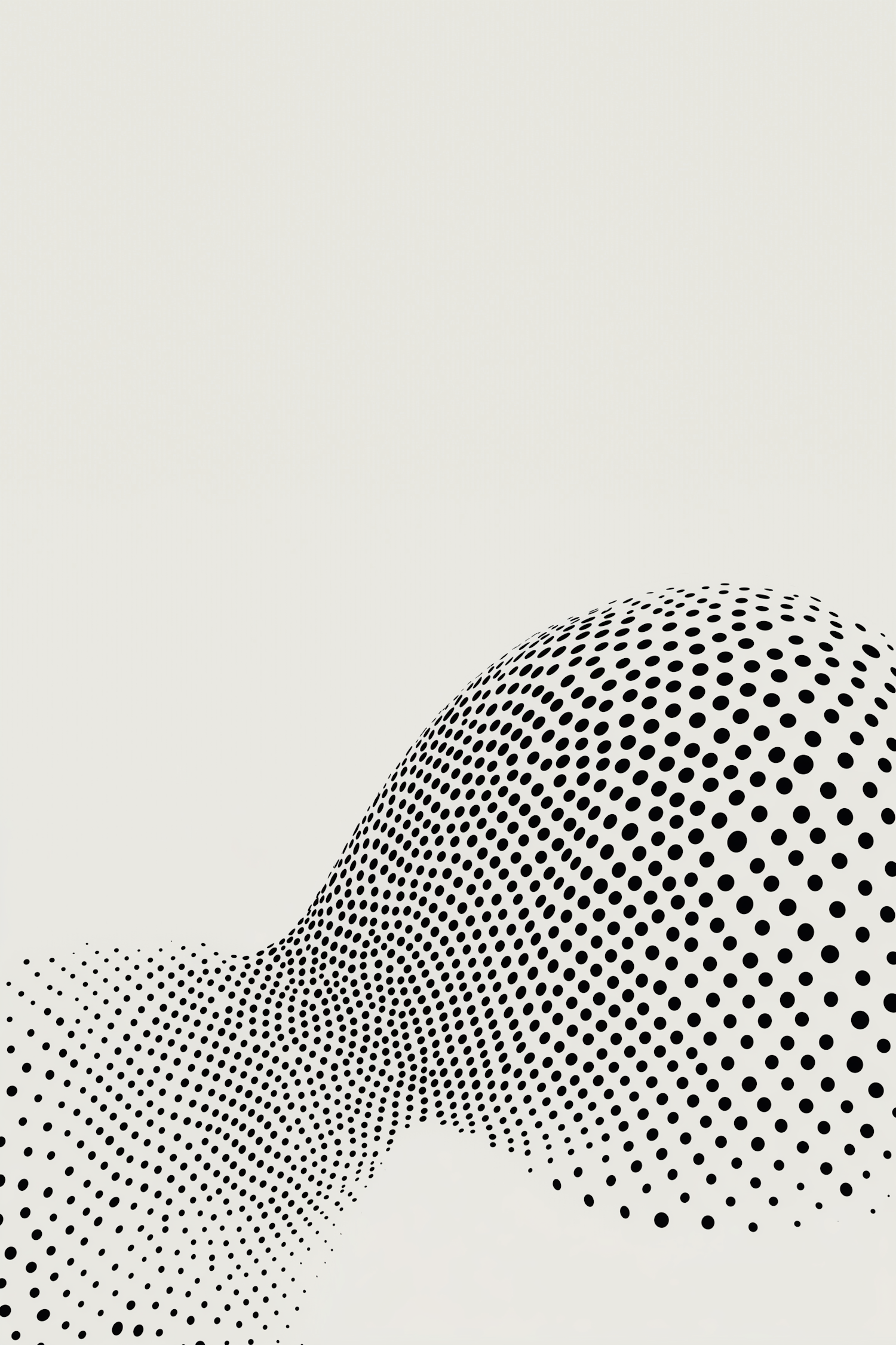Abstract wave-like pattern of black dots on a light beige background, creating a sense of depth and movement in a minimalist design.