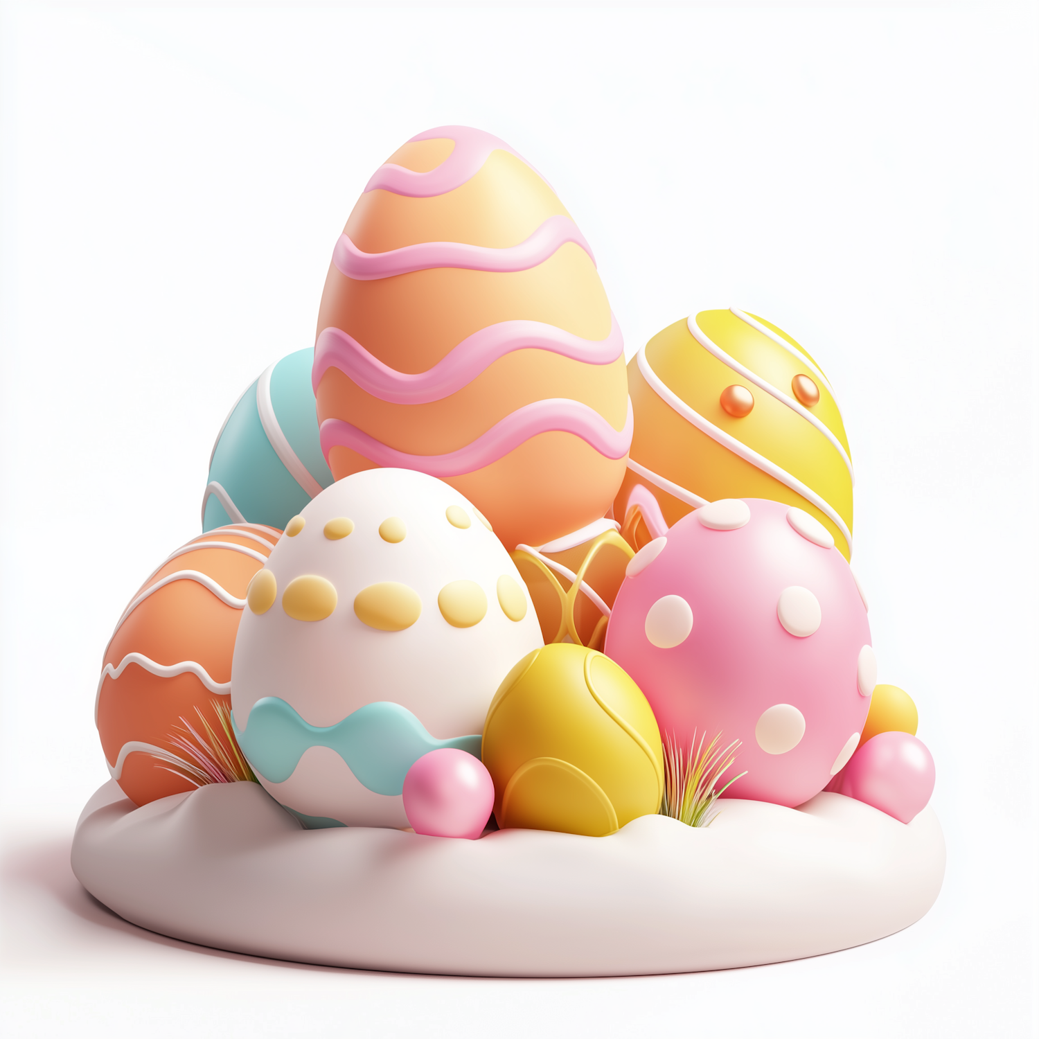 Bright pastel Easter eggs with polka dots, stripes, and wavy patterns on a soft white base. Perfect for festive and cheerful vibes.