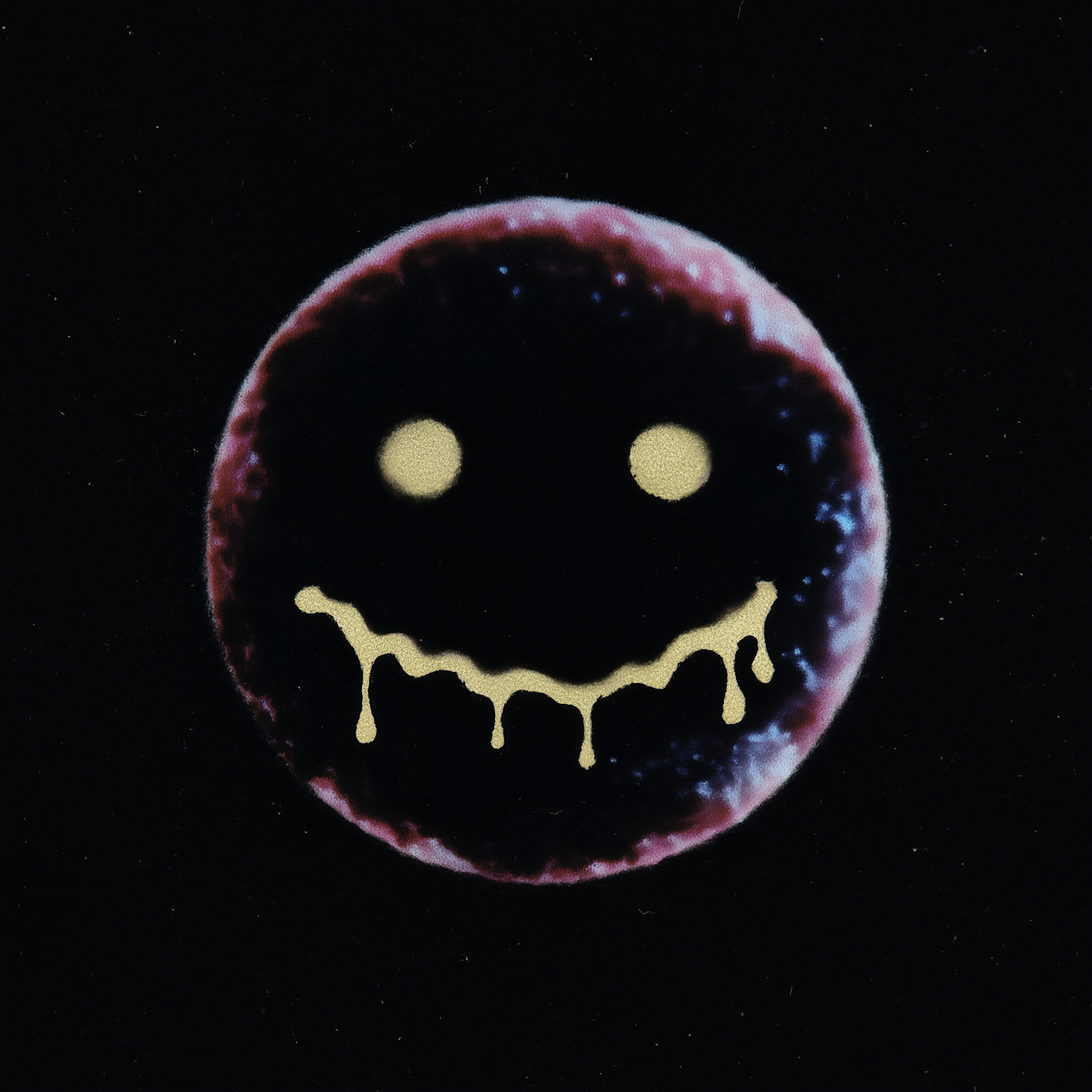 A glowing, eerie smiley face with dripping features on a dark, cosmic-like background. Perfect for a mysterious or spooky vibe.