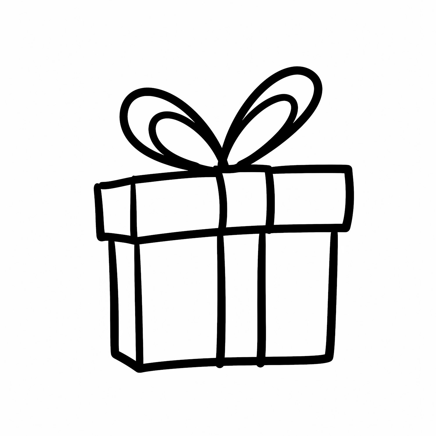 Minimalist black-and-white line art of a gift box with a ribbon bow, perfect for holiday or celebration-themed designs.