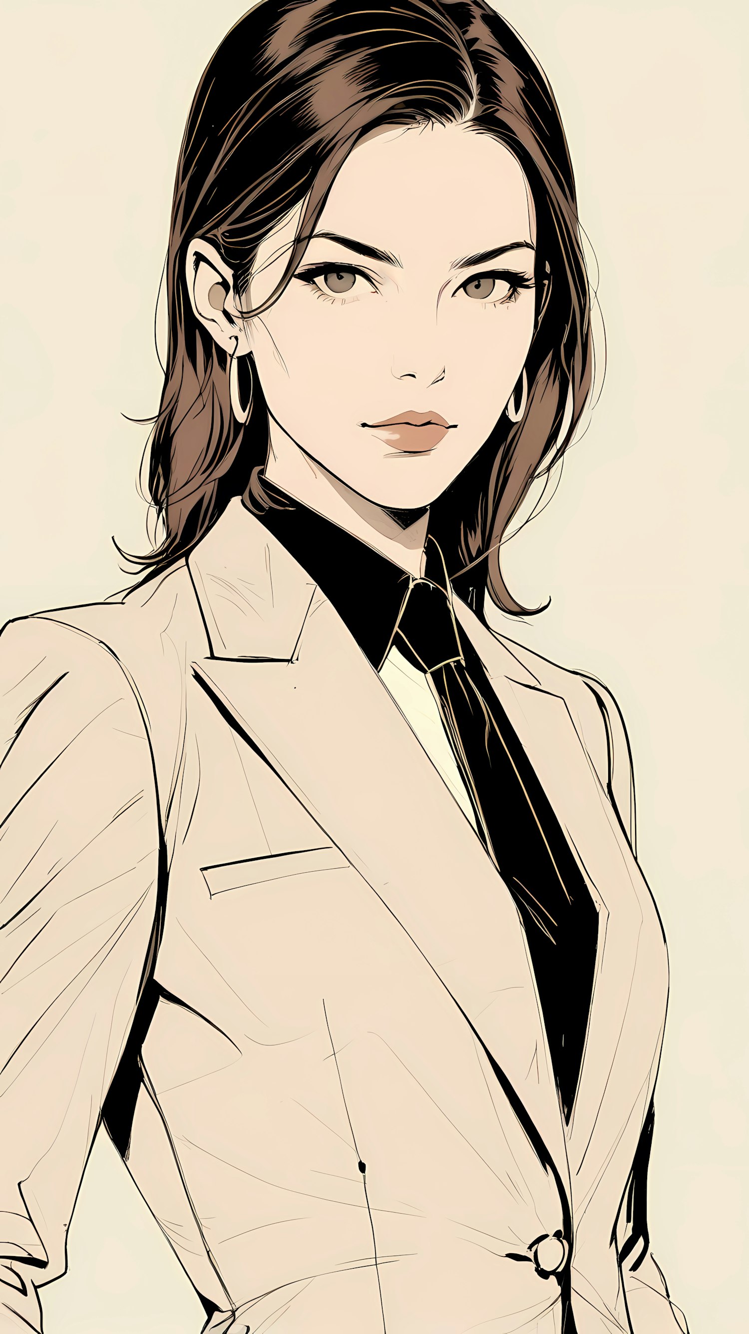 Stylish illustration of a professional individual in a suit, featuring clean lines and elegant attire, set against a neutral background.