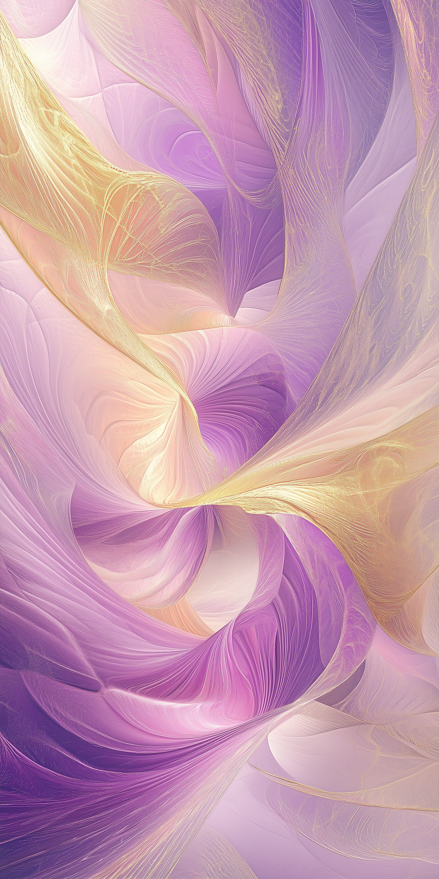 Abstract art with flowing pastel hues of purple, lavender, and gold, creating a dreamy, ethereal texture with intricate patterns.