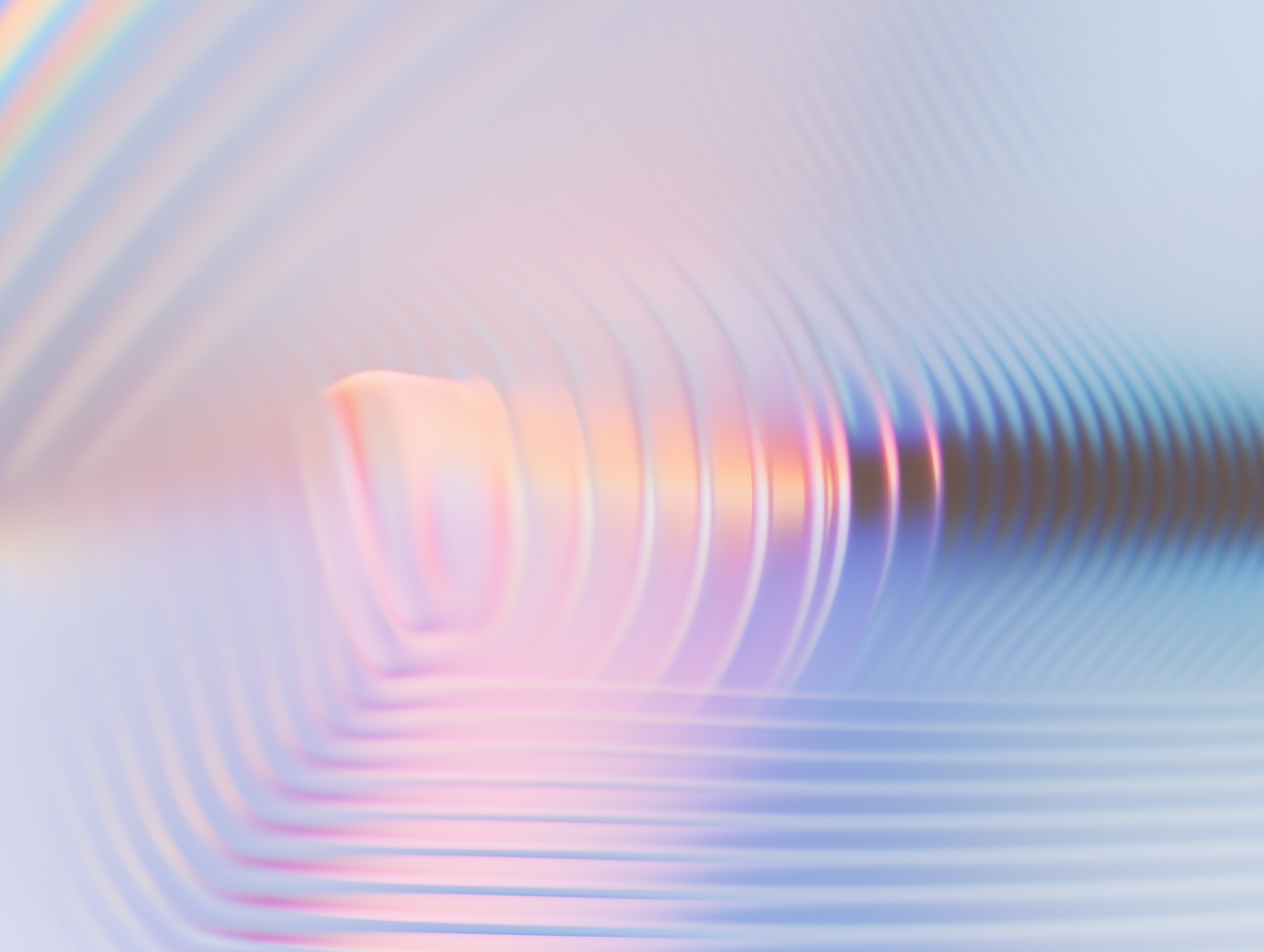 Abstract pastel ripples with soft pink, blue, and orange hues, creating a dreamy, ethereal gradient and glowing focal point.