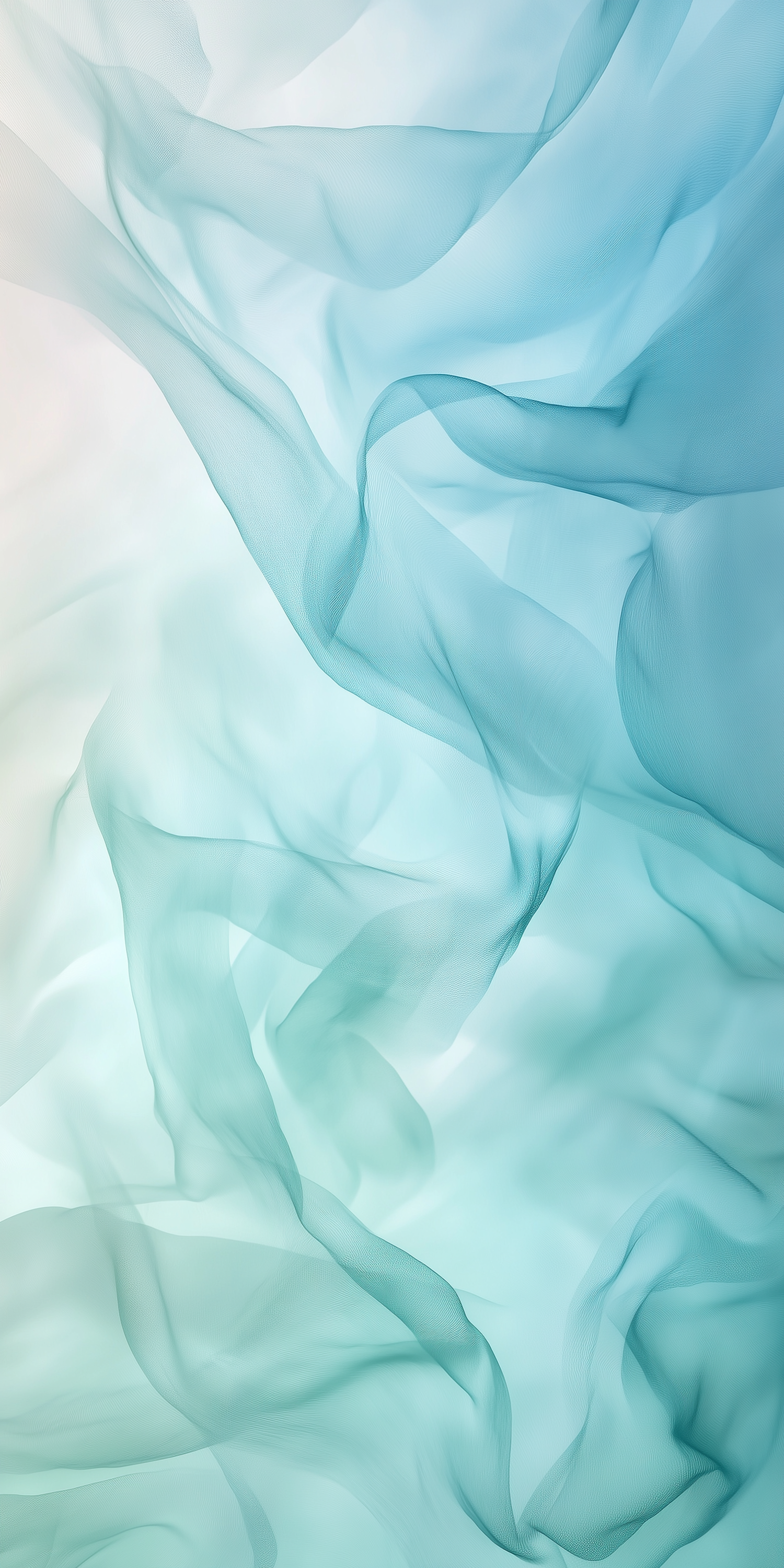 Soft teal and white flowing textures create a serene, abstract design with a calming, ethereal feel. Perfect for tranquil, artistic vibes.