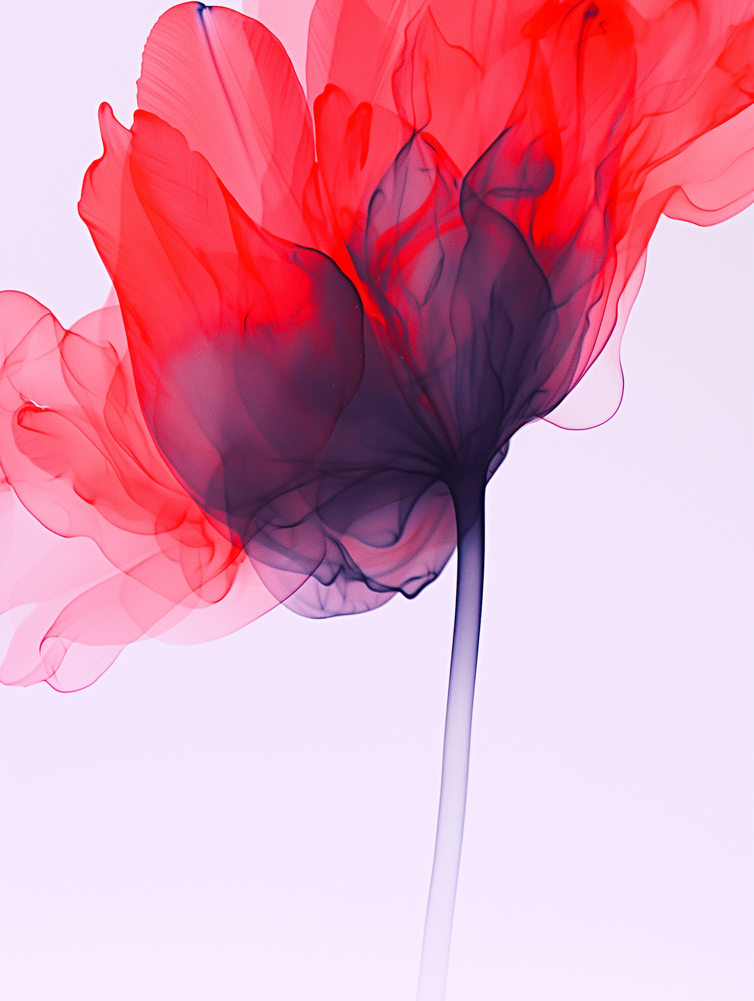 A stunning abstract flower with translucent red and purple petals on a light background, blending art and nature beautifully.
