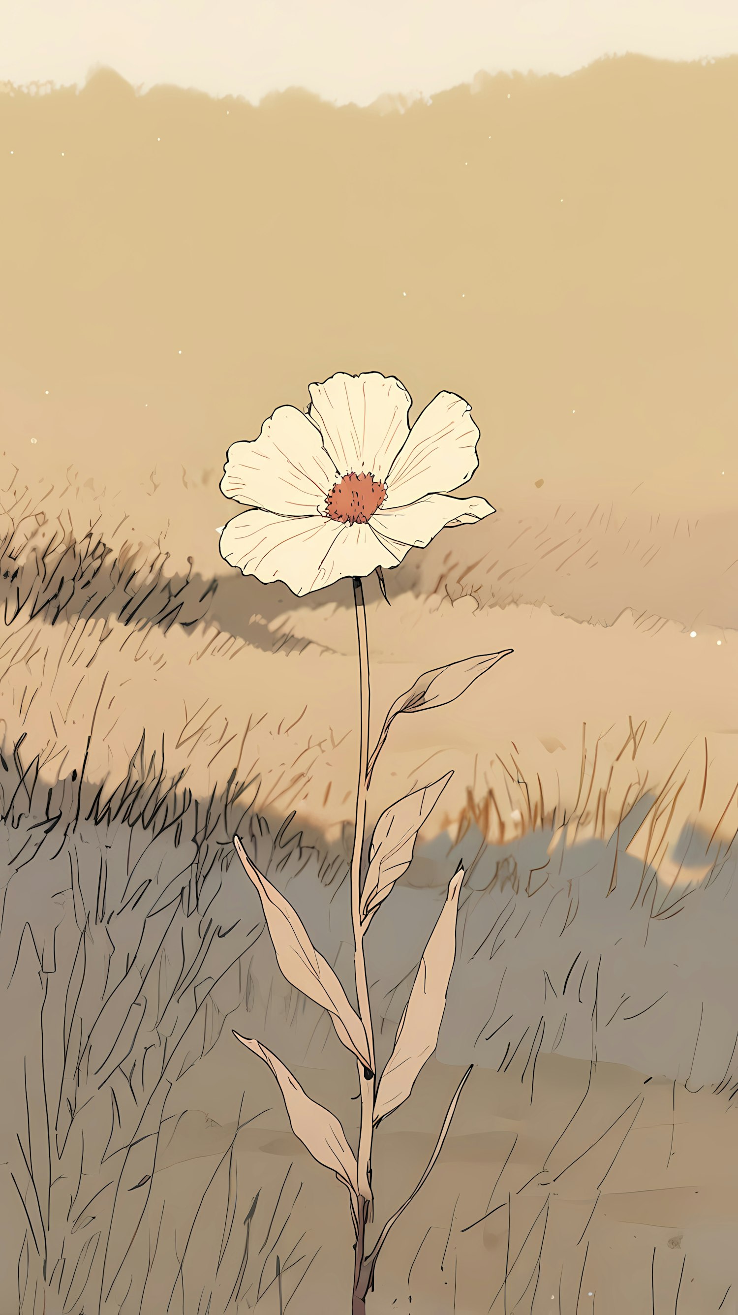 An artistic illustration of a white flower with a red center against a soothing muted background, showcasing simplistic beauty in nature.