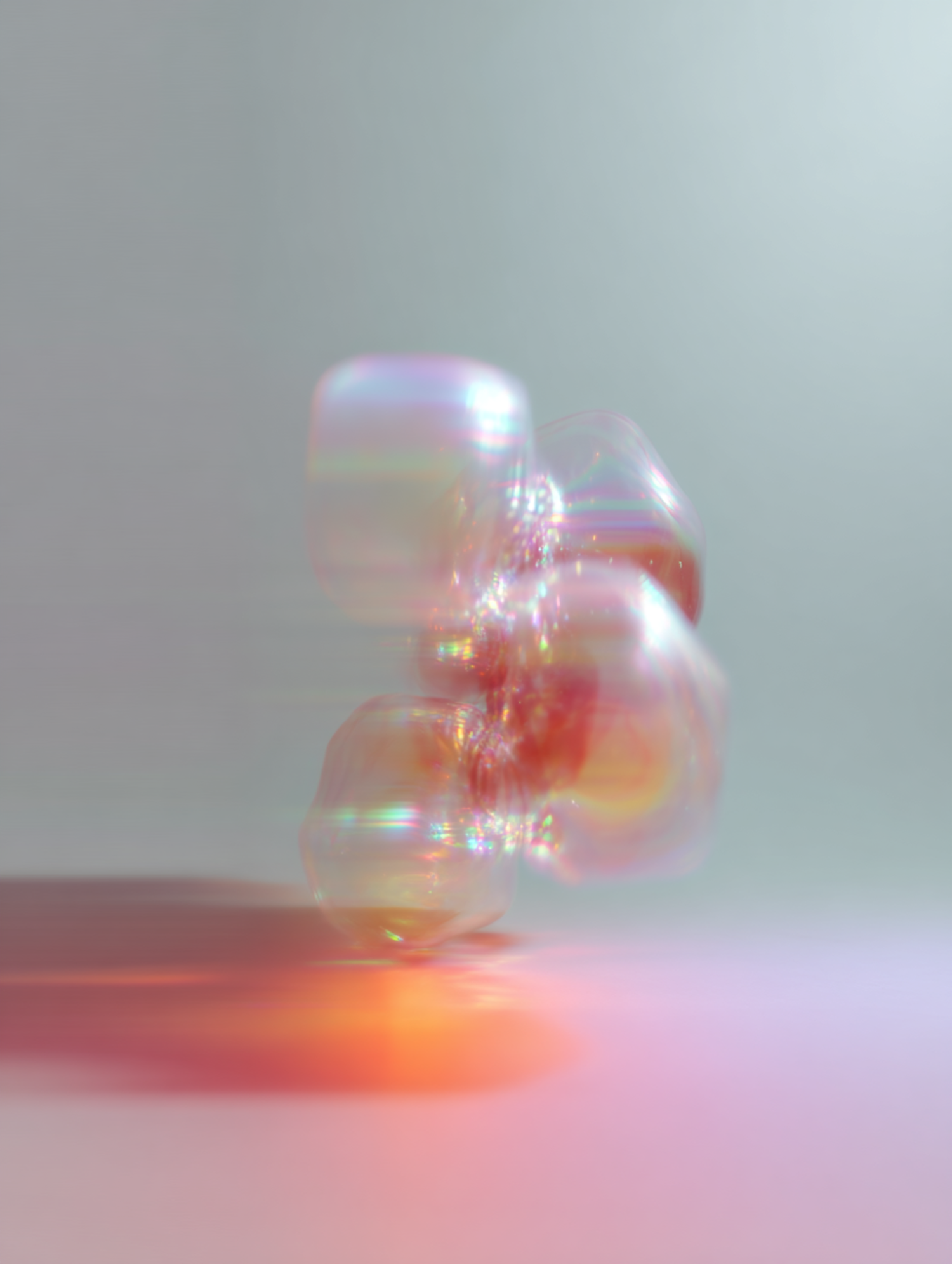 Abstract iridescent shapes with soft lighting and a gradient background, creating a dreamy and surreal visual effect.