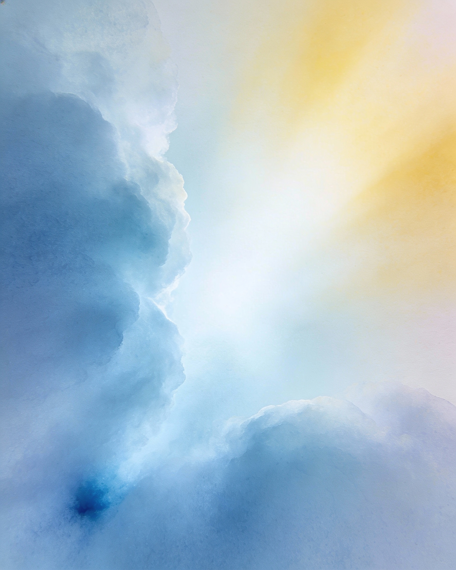 Abstract artwork with soft blue and yellow gradients blending seamlessly, evoking a serene and ethereal atmosphere.