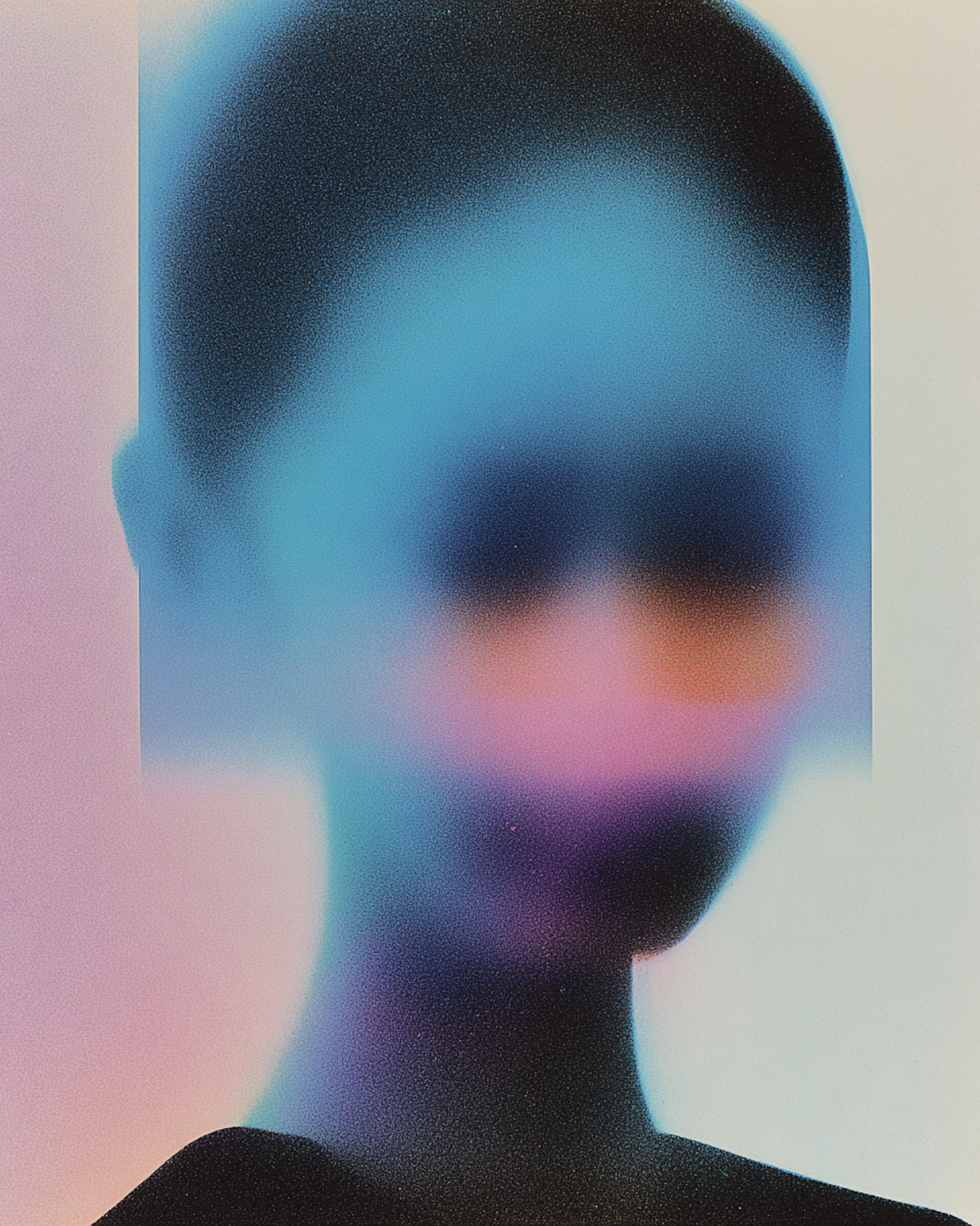 Abstract art featuring a human figure in vibrant gradients of blue, pink, and orange, with a soft, dreamlike quality.