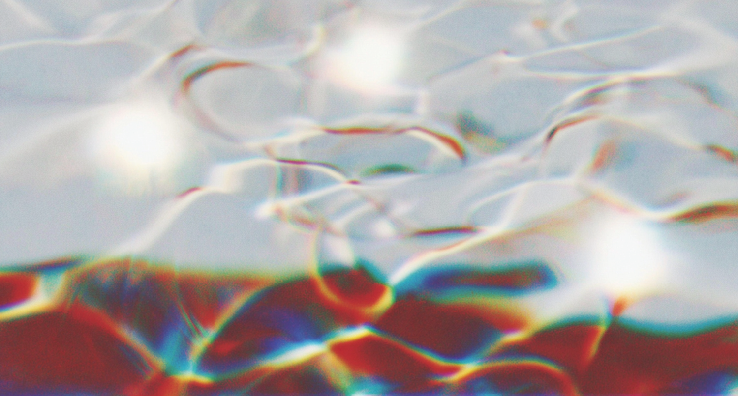 Abstract light and color interplay resembling sunlight on rippling water, with vibrant red, blue, and white gradients creating a dynamic effect.