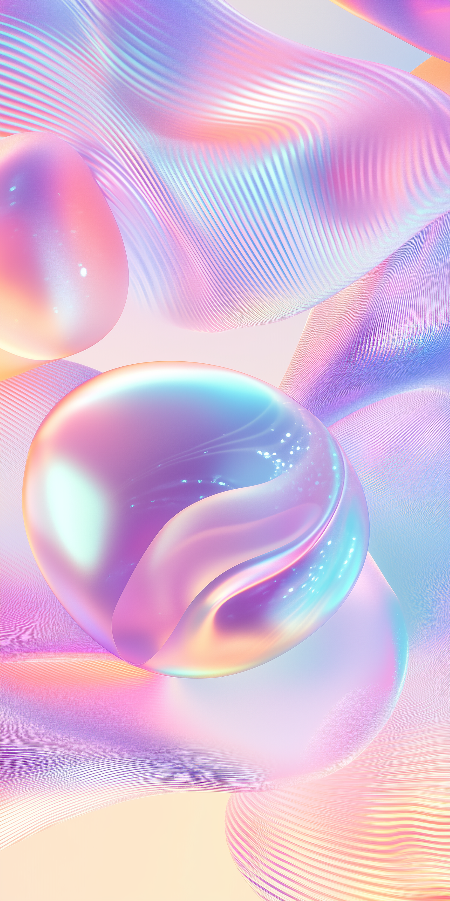 Dreamy pastel abstract art with a glossy orb and flowing wave patterns in pink, blue, and yellow hues. Perfect for a calming aesthetic.