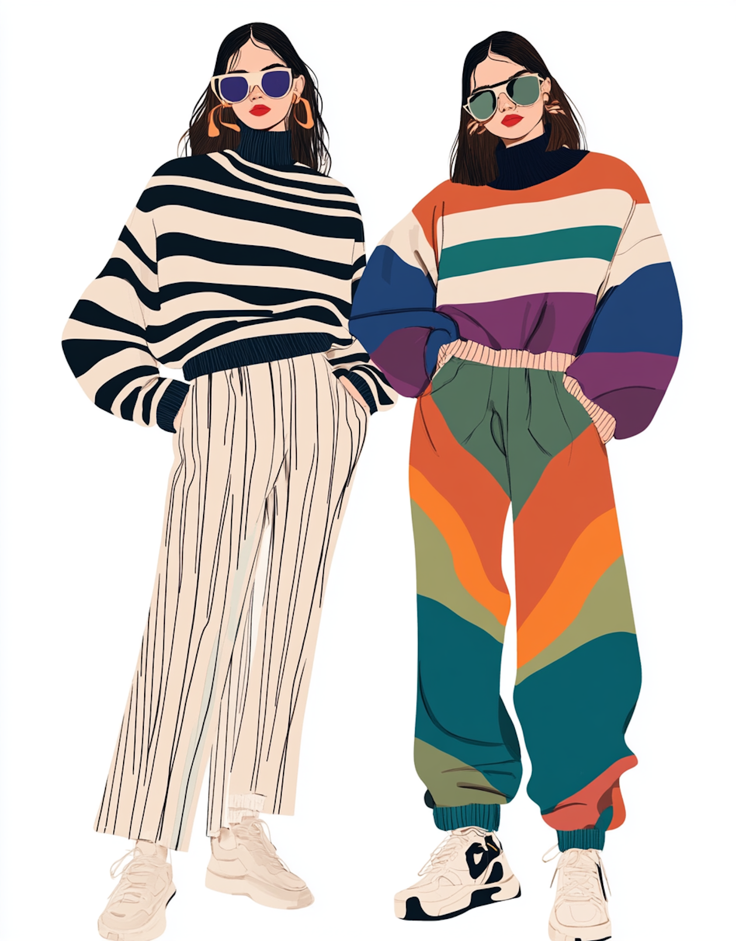 Fashionable Duo in Bold Sweaters
