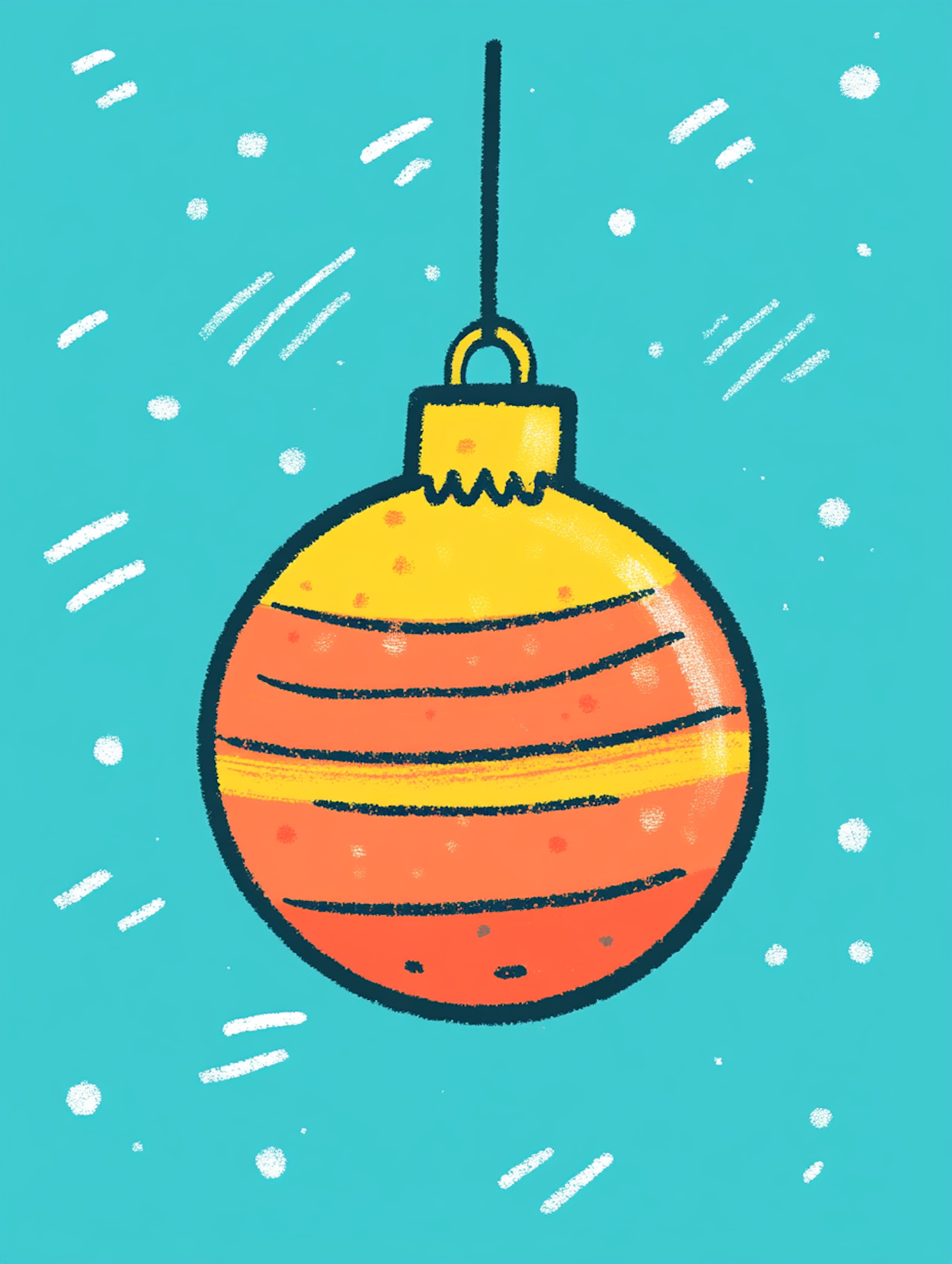 Colorful Christmas ornament illustration with warm hues and festive background, perfect for holiday-themed designs.