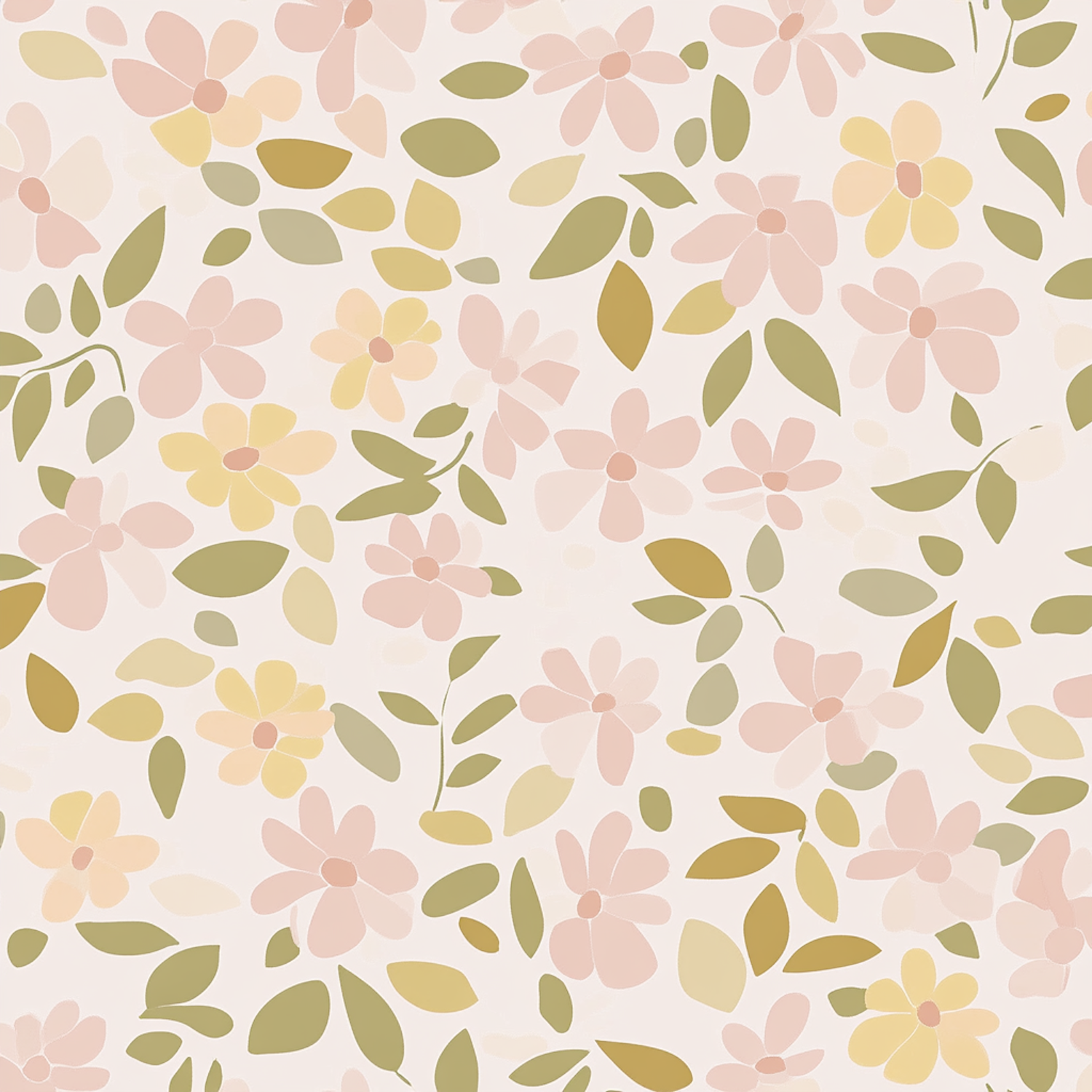 Seamless floral pattern with pastel pink and yellow flowers, green leaves on a cream background. Perfect for wallpaper or fabric design.