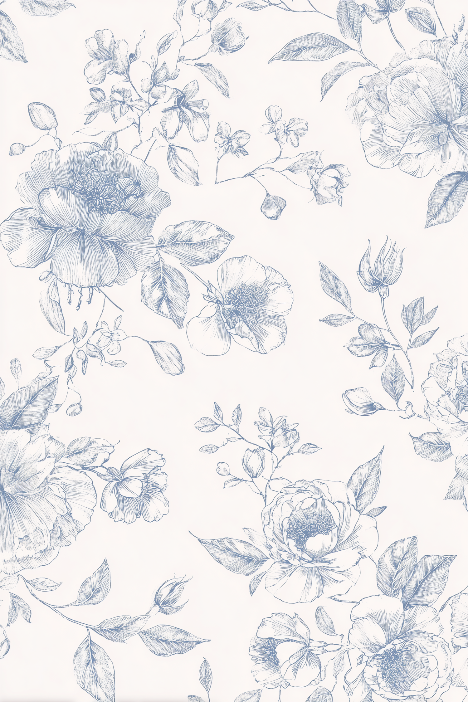 Elegant blue floral line art on a soft white background, perfect for vintage-inspired designs or decorative patterns.