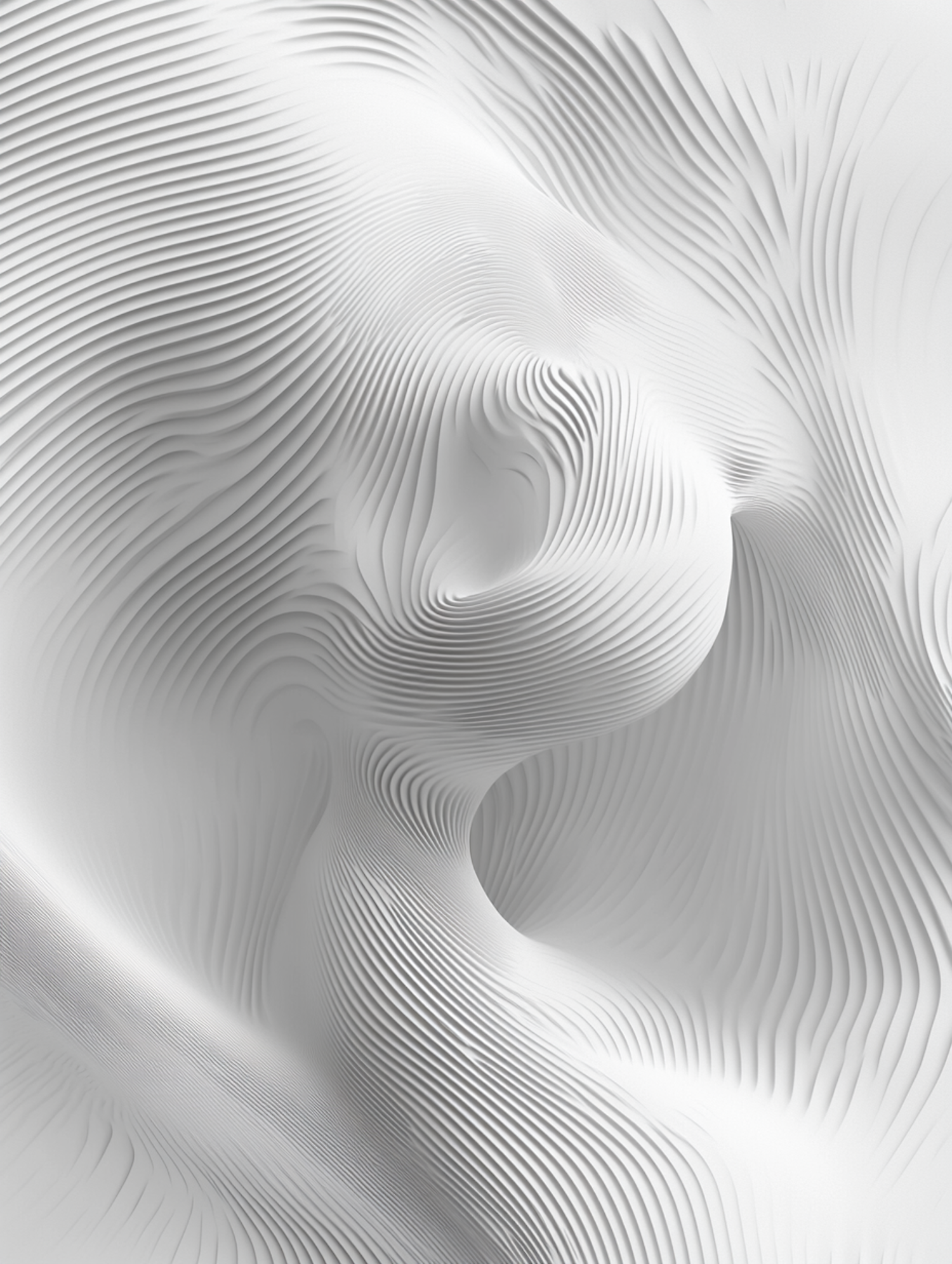 Abstract white wave-like pattern with flowing lines and curves, creating a 3D effect with light and shadow interplay.
