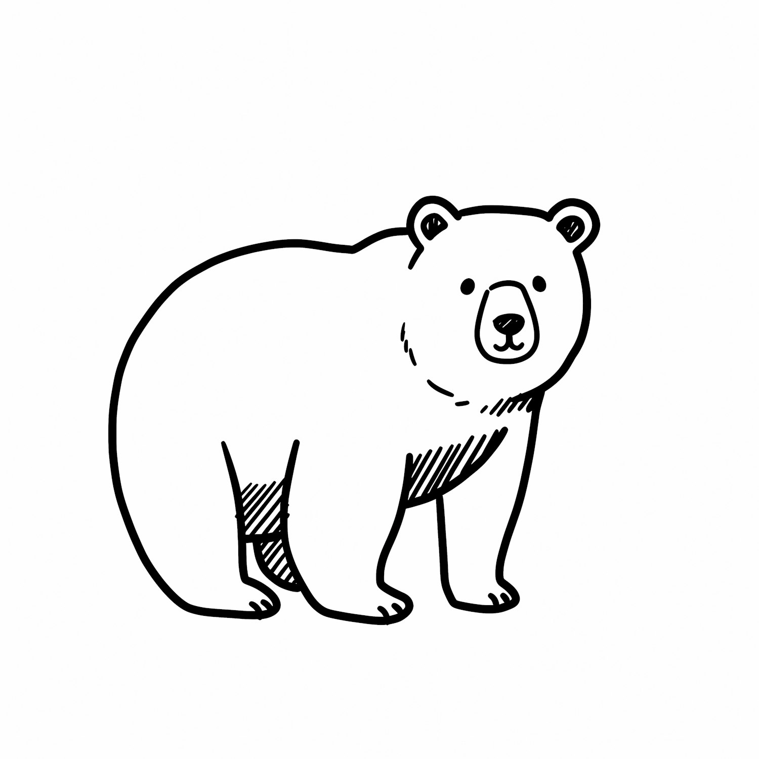 A charming black-and-white line drawing of a bear, perfect for educational or creative projects.