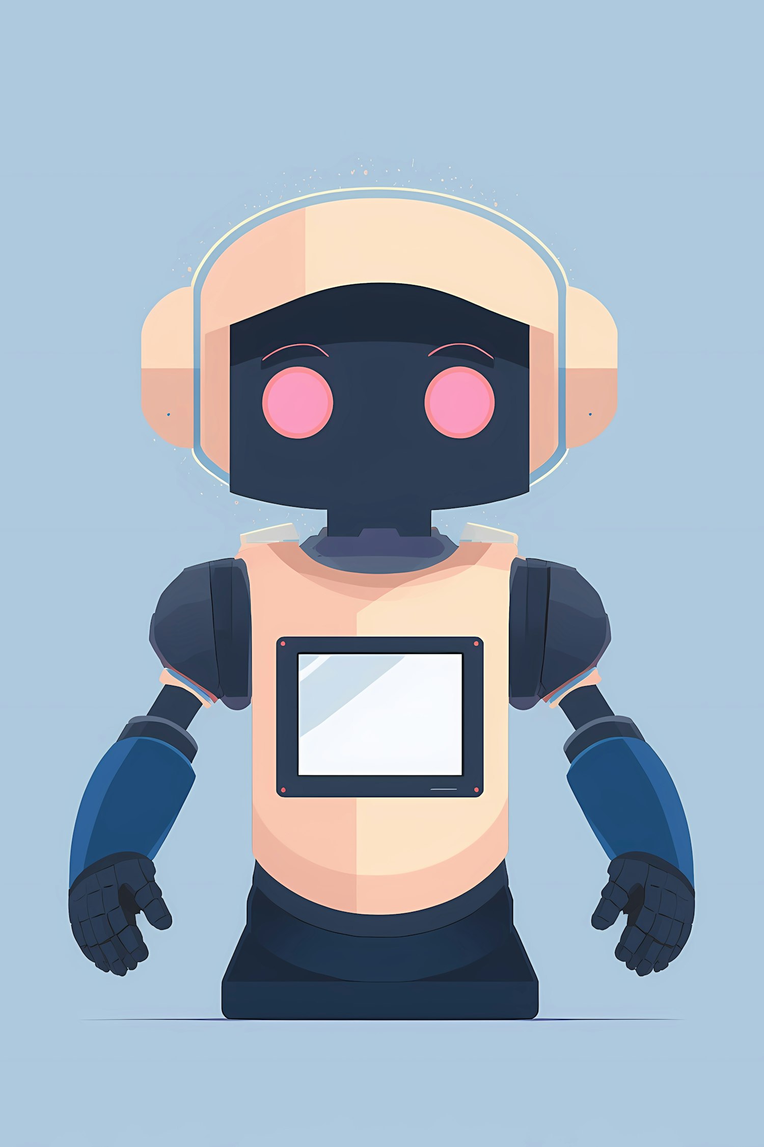 A cute and modern robot illustration with a beige and blue design, featuring a screen on its chest and a friendly appearance.