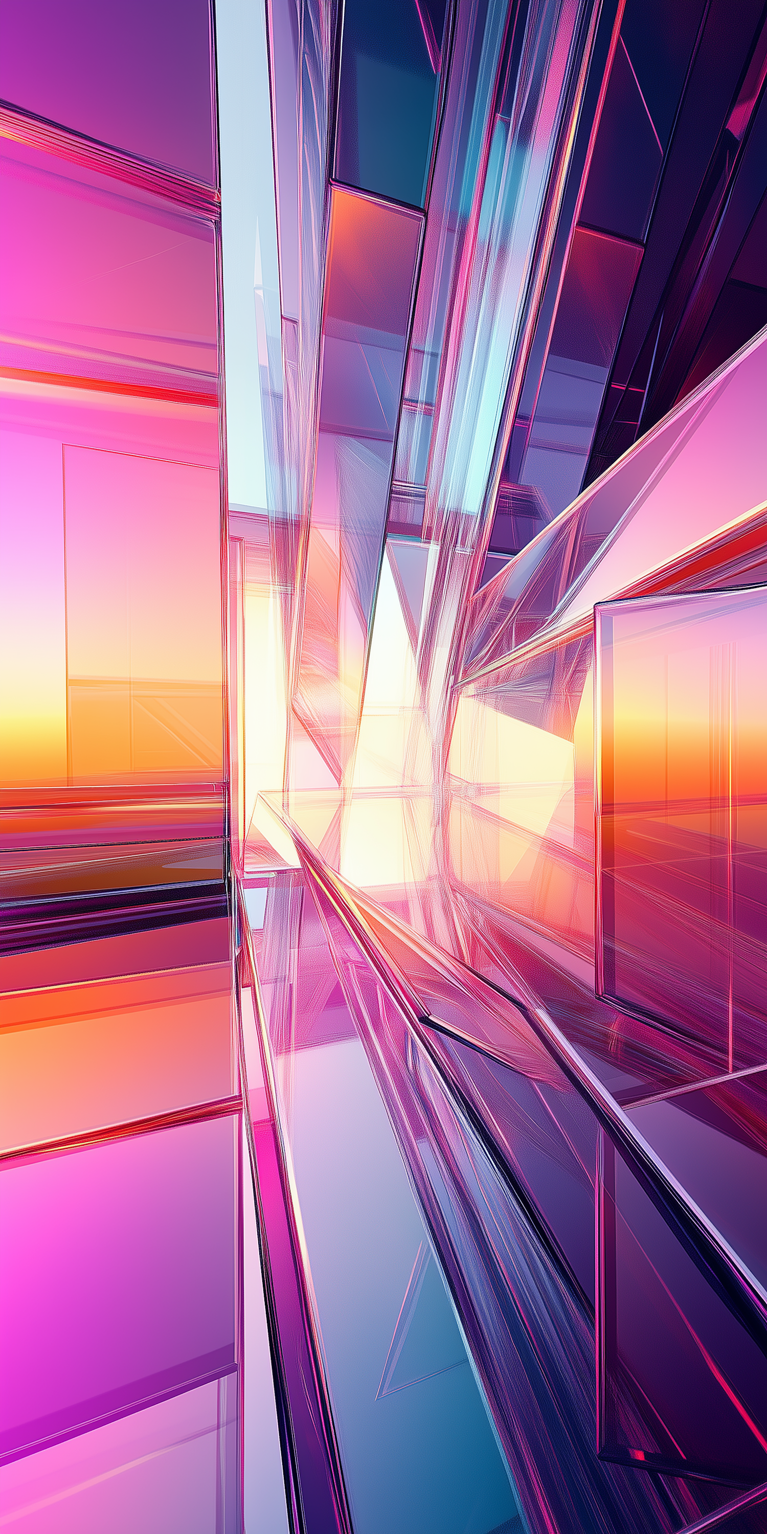 Abstract digital art with vibrant pink, orange, and blue geometric shapes, creating a futuristic and luminous design.