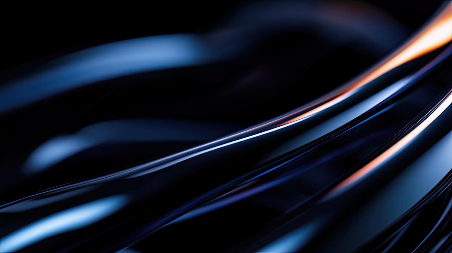 Abstract flowing lines in deep blues and blacks with bright orange highlights, creating a sleek and futuristic design.