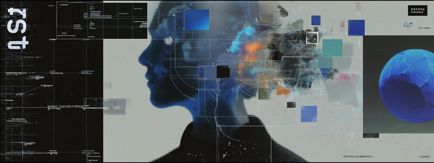 A futuristic digital artwork of a human profile with abstract geometric and technological elements, evoking themes of AI and connectivity.