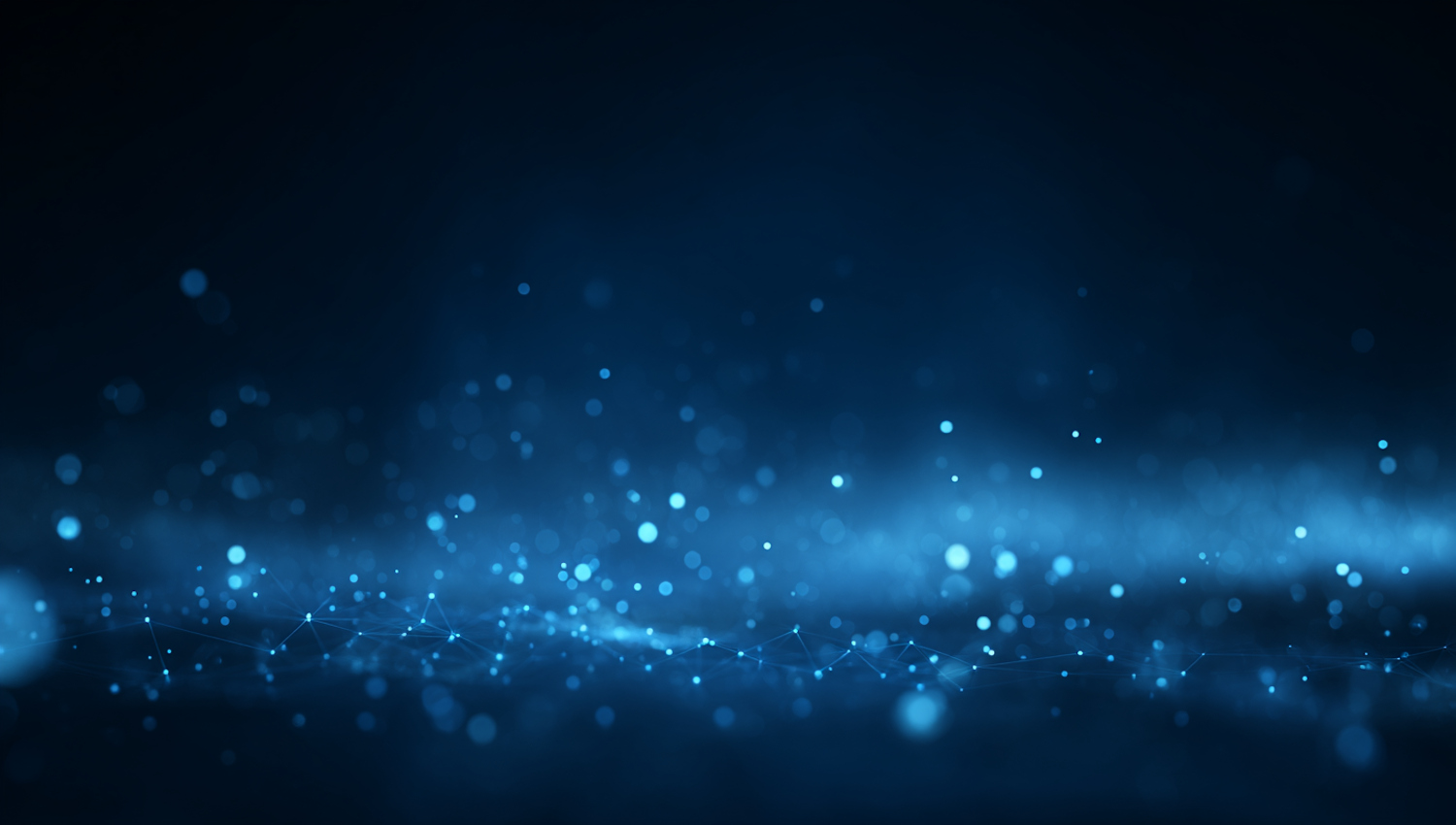 Futuristic blue abstract background with glowing particles, bokeh effects, and a subtle network pattern for a tech-inspired aesthetic.