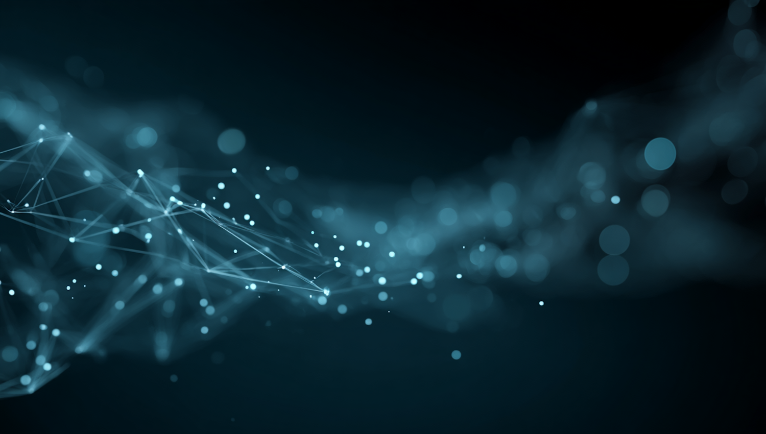 Abstract digital art with glowing dots and lines on a dark blue background, evoking themes of technology and connectivity.