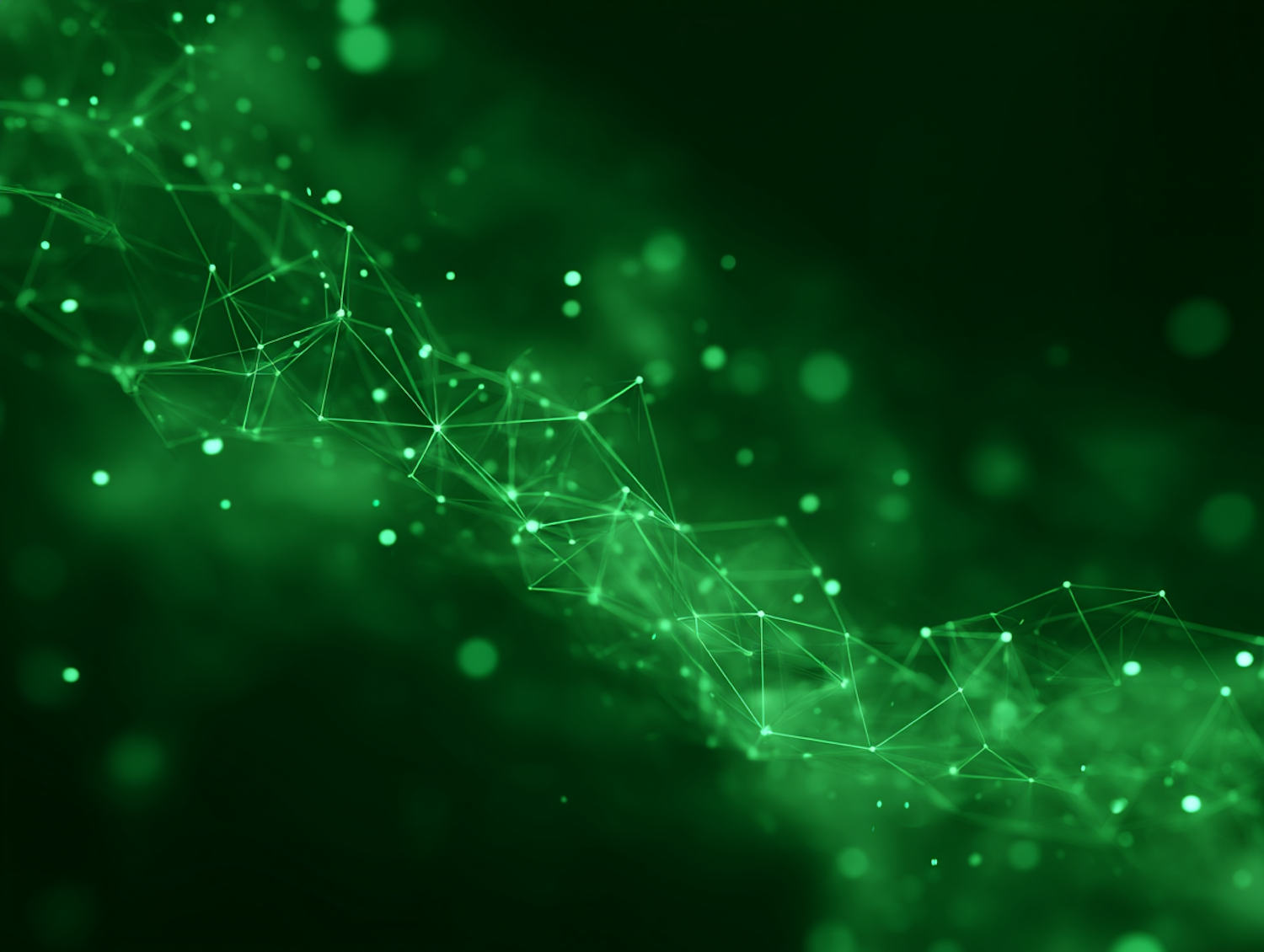 Abstract green network of glowing lines and nodes, evoking themes of technology, data, and connectivity in a futuristic style.
