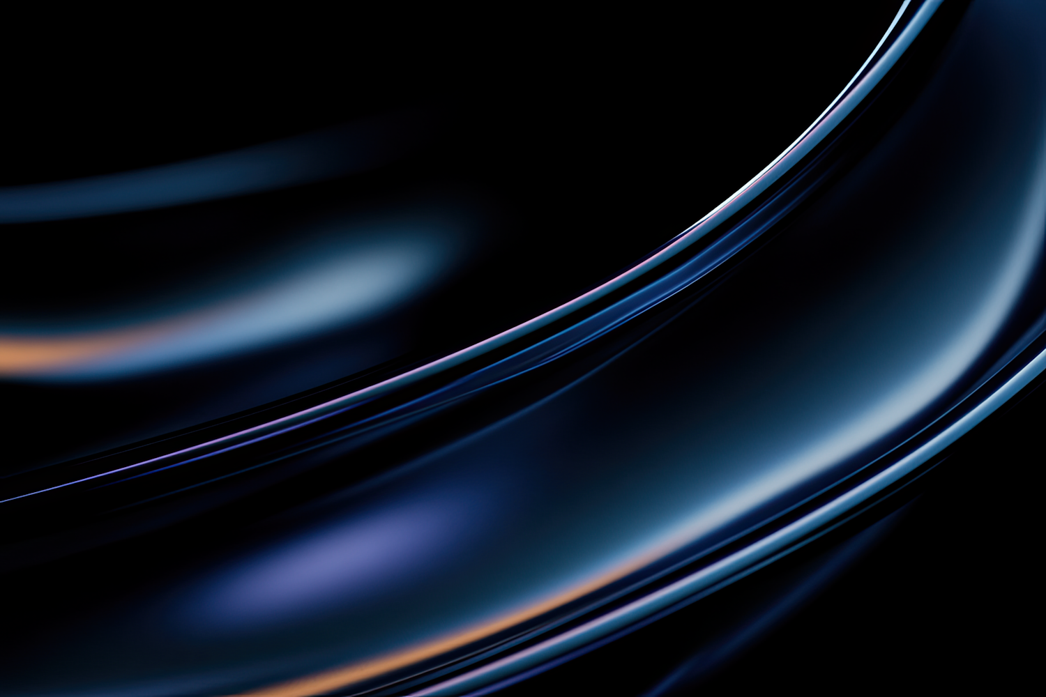 Abstract glossy curves with dark tones, deep blue, and subtle orange highlights. A sleek, futuristic design with fluid motion.
