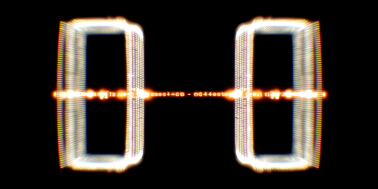 Futuristic glowing design with neon rectangles and mysterious text on a black background, evoking a high-tech, digital aesthetic.
