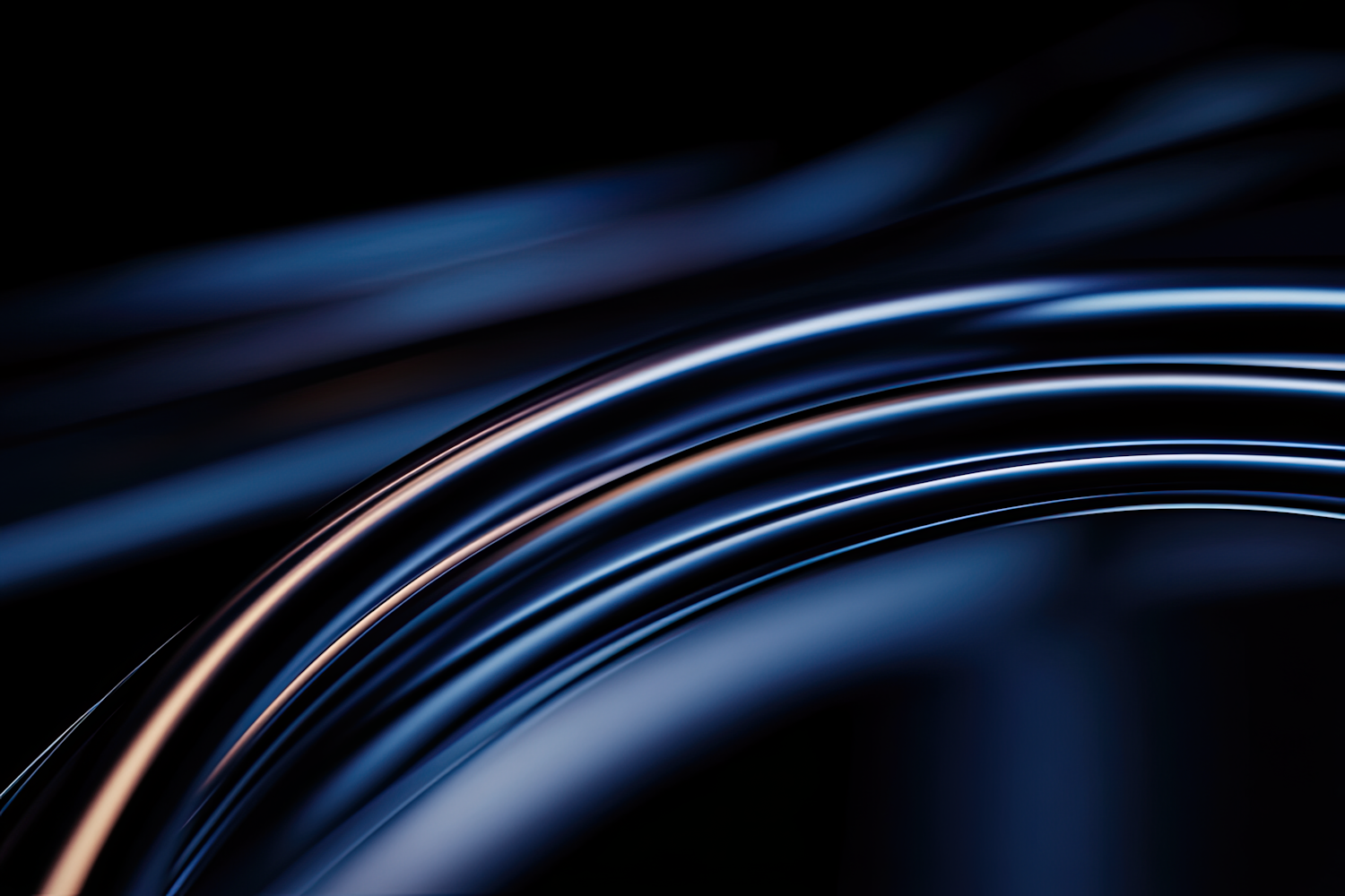 Abstract close-up of reflective curved tubes with blue and orange highlights, set against a dark background for a futuristic vibe.