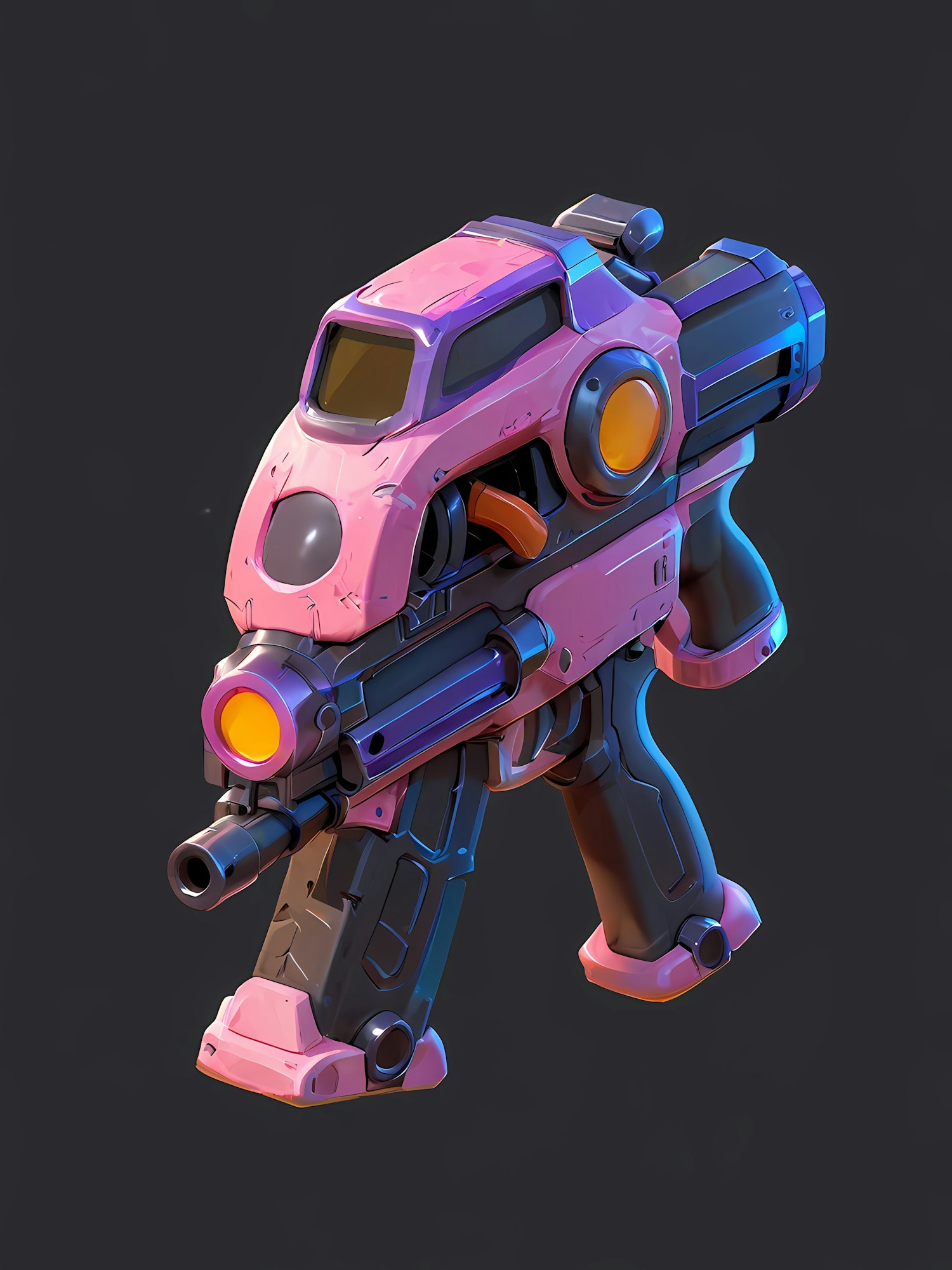 A vibrant pink and black futuristic weapon design with glowing orange accents, perfect for sci-fi or gaming enthusiasts.