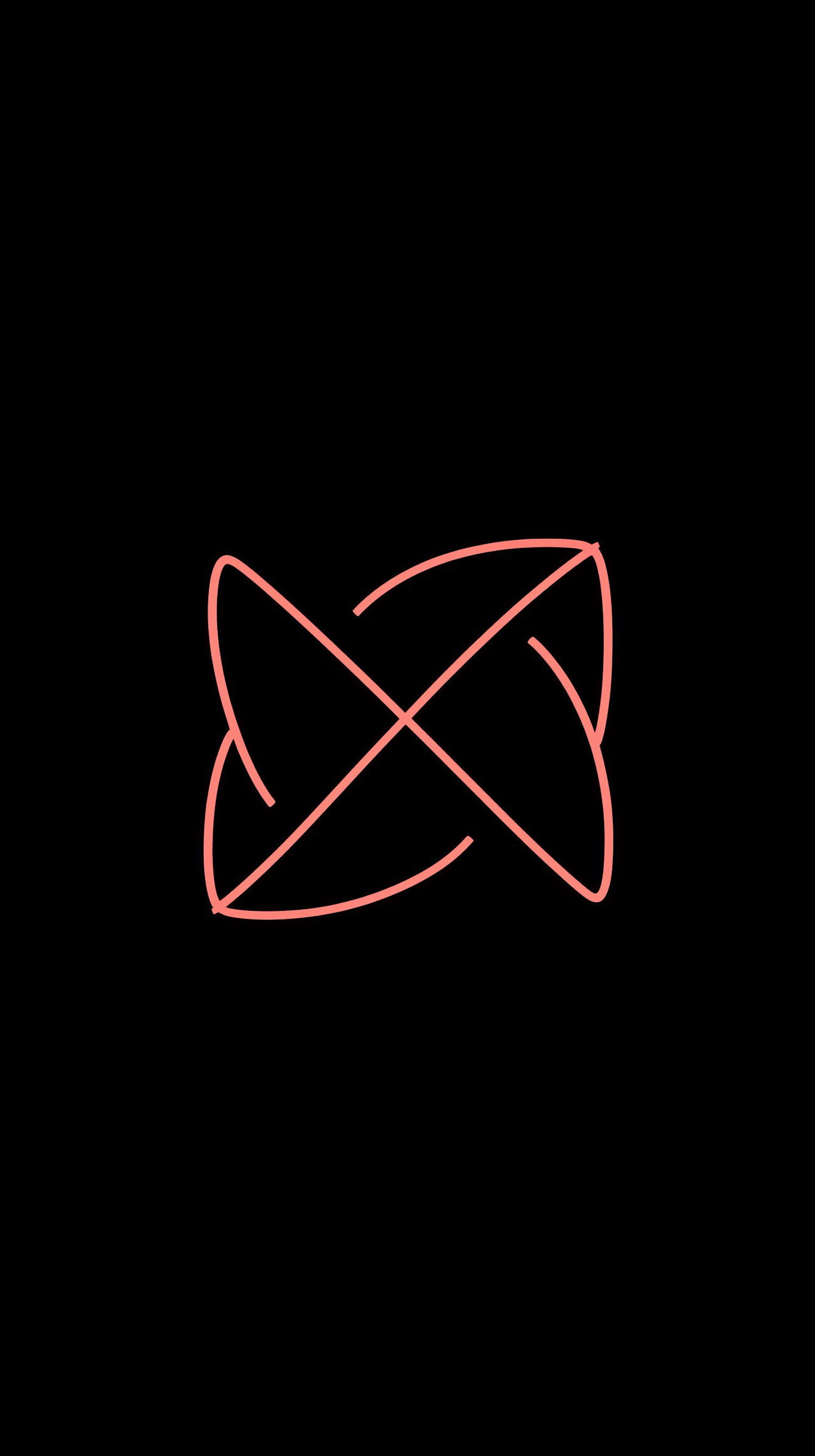 Minimalist geometric design with pink intersecting curves on a black background, creating a modern and symmetrical flower-like pattern.