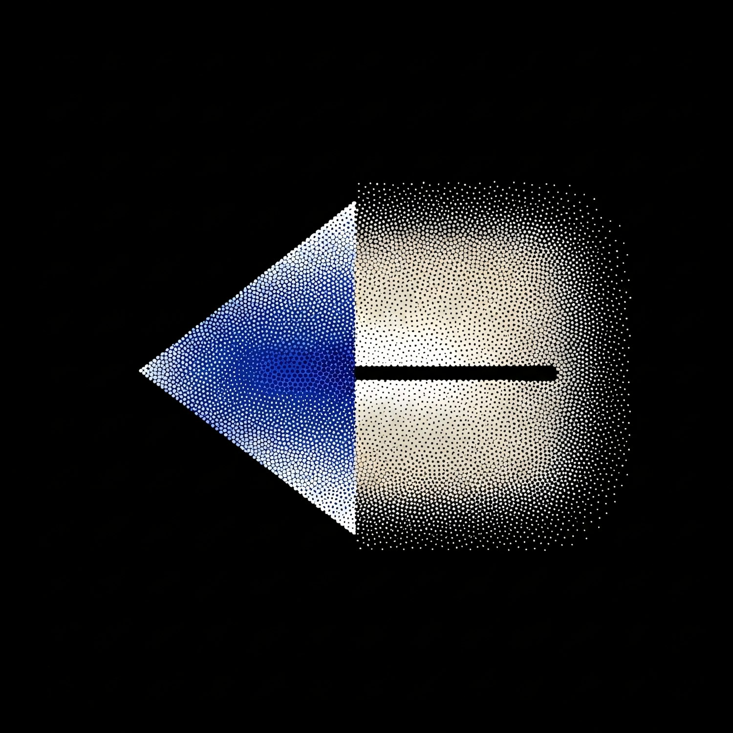 Abstract geometric art with a blue-to-white triangle and a beige semicircle, textured with dots, set against a black background.