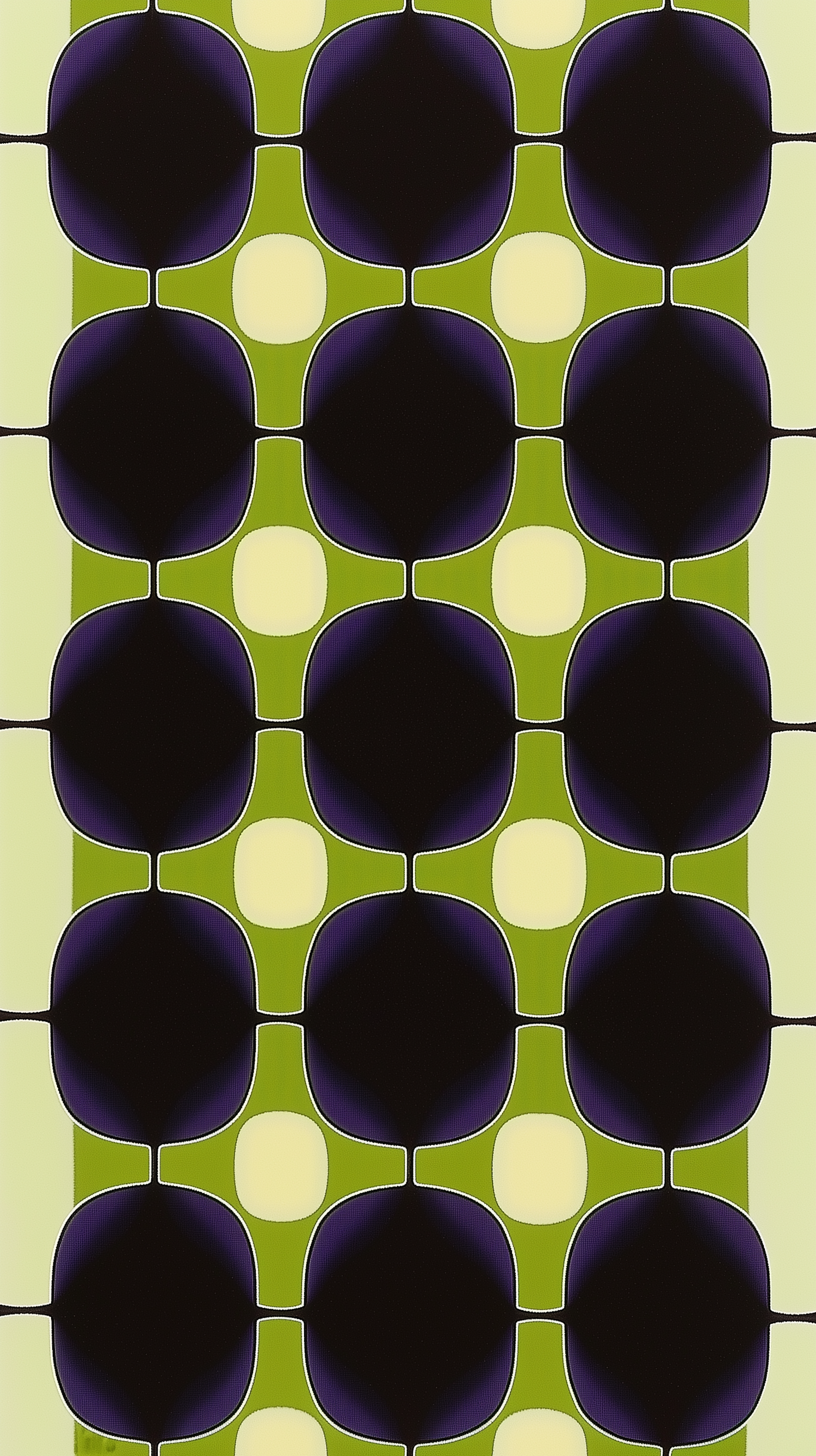 Vibrant geometric pattern with dark circles, purple gradient, and green-yellow background, creating a dynamic visual effect.