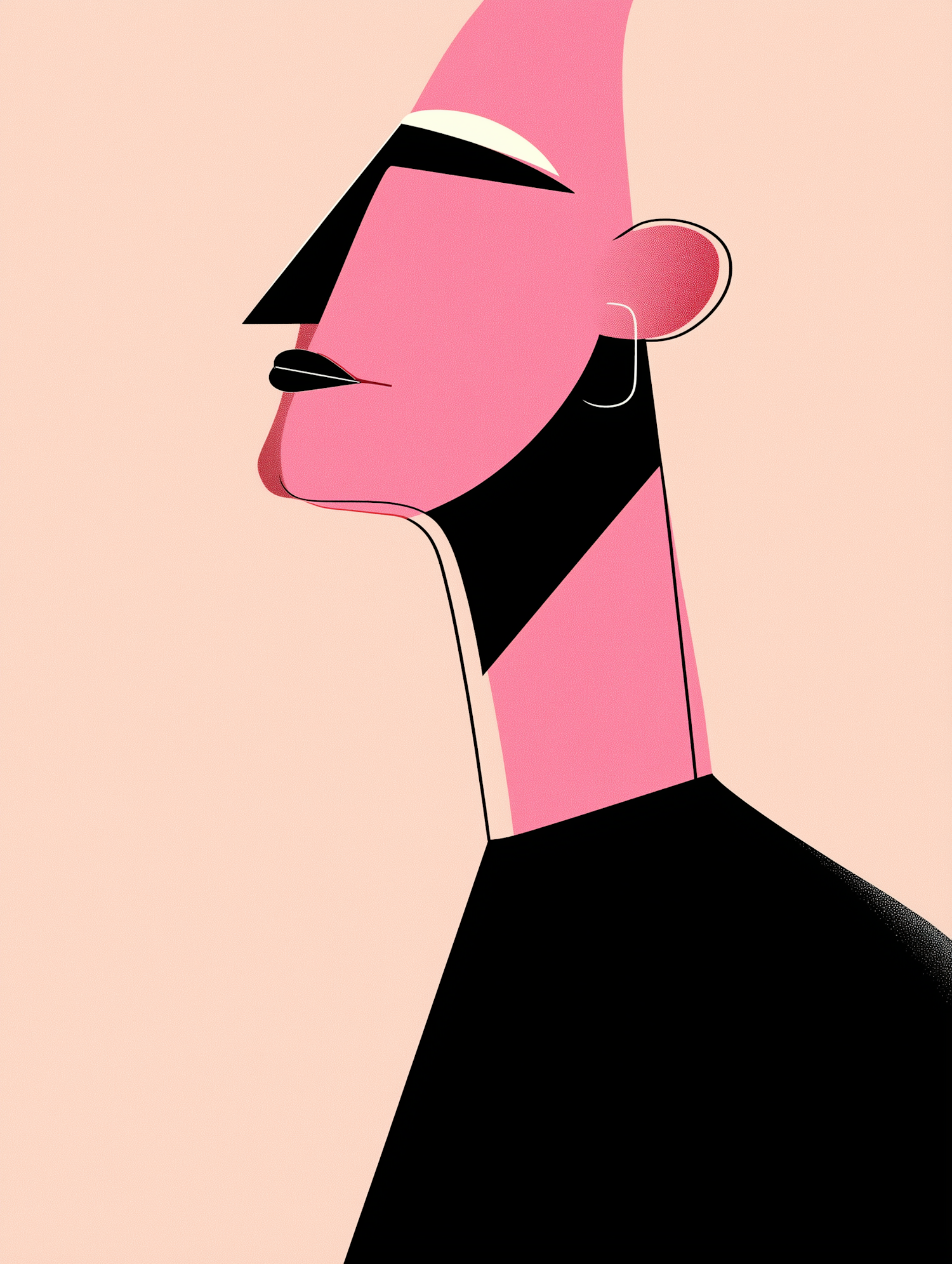 Minimalist illustration of a human profile with bold geometric shapes and a soft color palette, perfect for modern art enthusiasts.