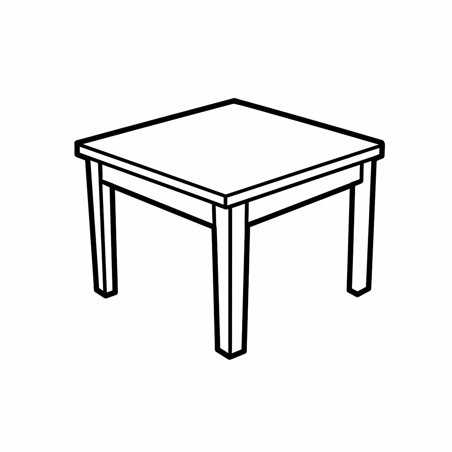 A clean black-and-white line drawing of a square table with four legs, showcasing a minimalist and geometric design.