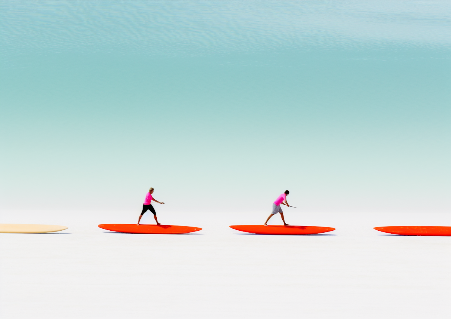 Surreal Paddleboarders on a Two-Tone Horizon
