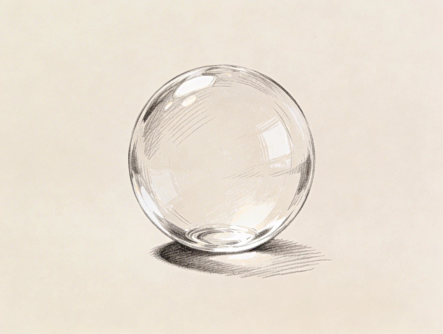 A pencil sketch of a transparent glass sphere with realistic shading and highlights, showcasing artistic skill and attention to detail.